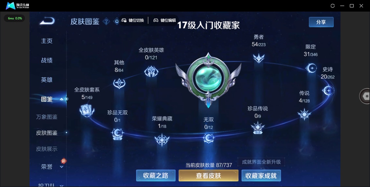- PX_2085594-实名: 可修改 贵族等级: V6 英雄数: 123 皮肤数: 203 荣耀水晶: 赤影疾锋 星传说: 幽冥之眼 传说皮: 黄金射手座,一念神魔,地狱之眼,胖达荣荣 限定皮: 李小龙,梁祝,时雨天司,冰霜恋舞曲,至尊宝,高山流水,五谷丰年,鸣野蒿,逐霄战戟,愿照·岁时盈 亮点: 【店长推荐精品号】历史银标李信最高战力6102,1荣耀典藏:关羽赤影疾锋,7传说:虞姬愿照岁时盈,桑