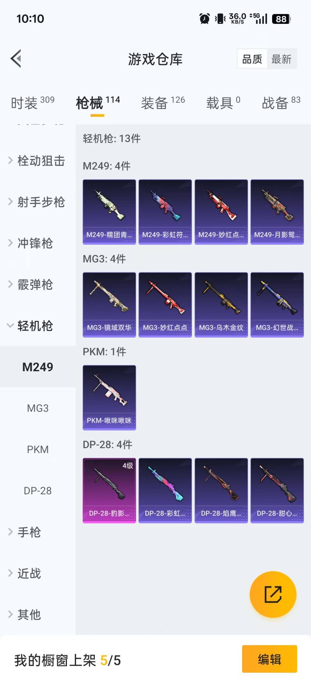 - PX_2101026-??/枪械12/装备292/战备139/王牌印记7/热力值68455/五级AKM-炫紫旋律/五级SCAR-L-纯梦嫁纱/一级M416-五爪金龙/六级M416-心之恋语/七级GROZA-旋转彩虹/五级M762-冷魅冰骑/五级UMP45-恐龙拽拽/五级P90-粉樱探戈/四级Kar98K-巳巳如意/一级AWM-橘柚倾心/四级DP-28-暗夜鎏金/宝贝奶油派/天使彩虹糖/梦幻火箭/冰