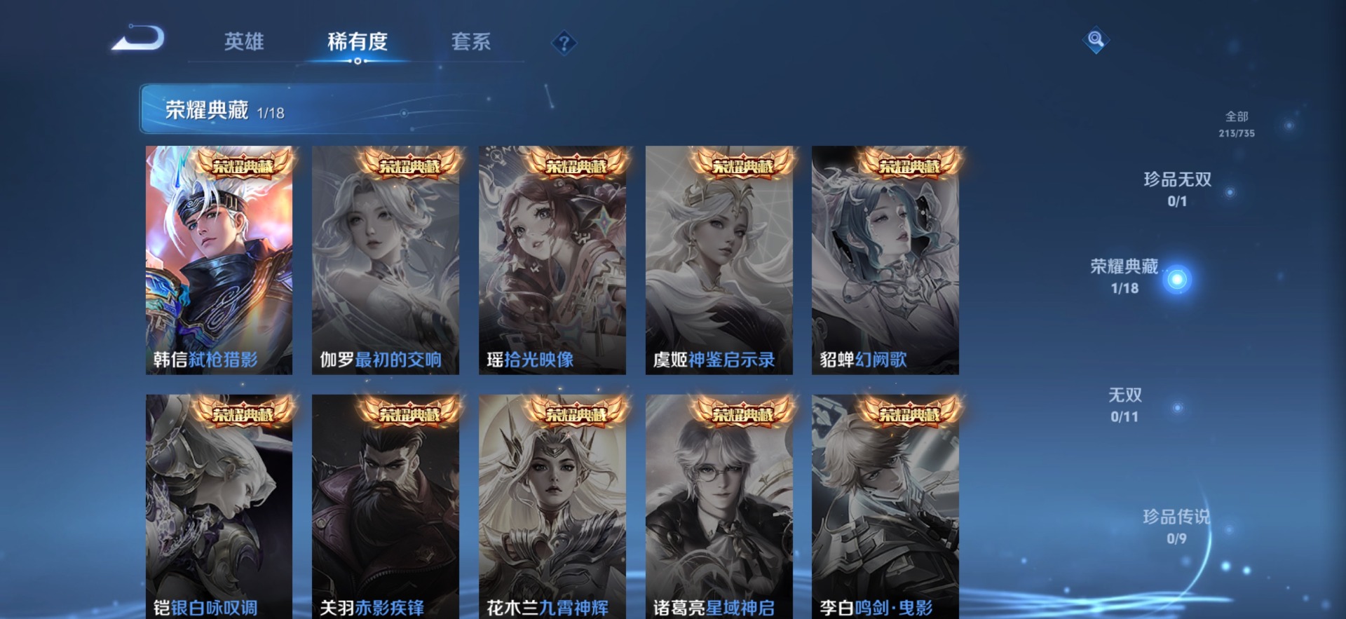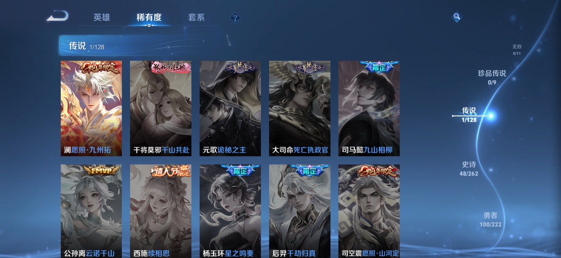 典韦岱宗,镜匿光追影者,公孙离玉兔公主,裴擒虎李小龙,上官婉儿梁祝,花木兰默契交锋,马可波罗山海·玄木吟,猪八戒猪悟能,孙悟空孙行者,赵云引擎之心,韩信傲雪梅枪,韩信飞衡,澜愿照·九州拓