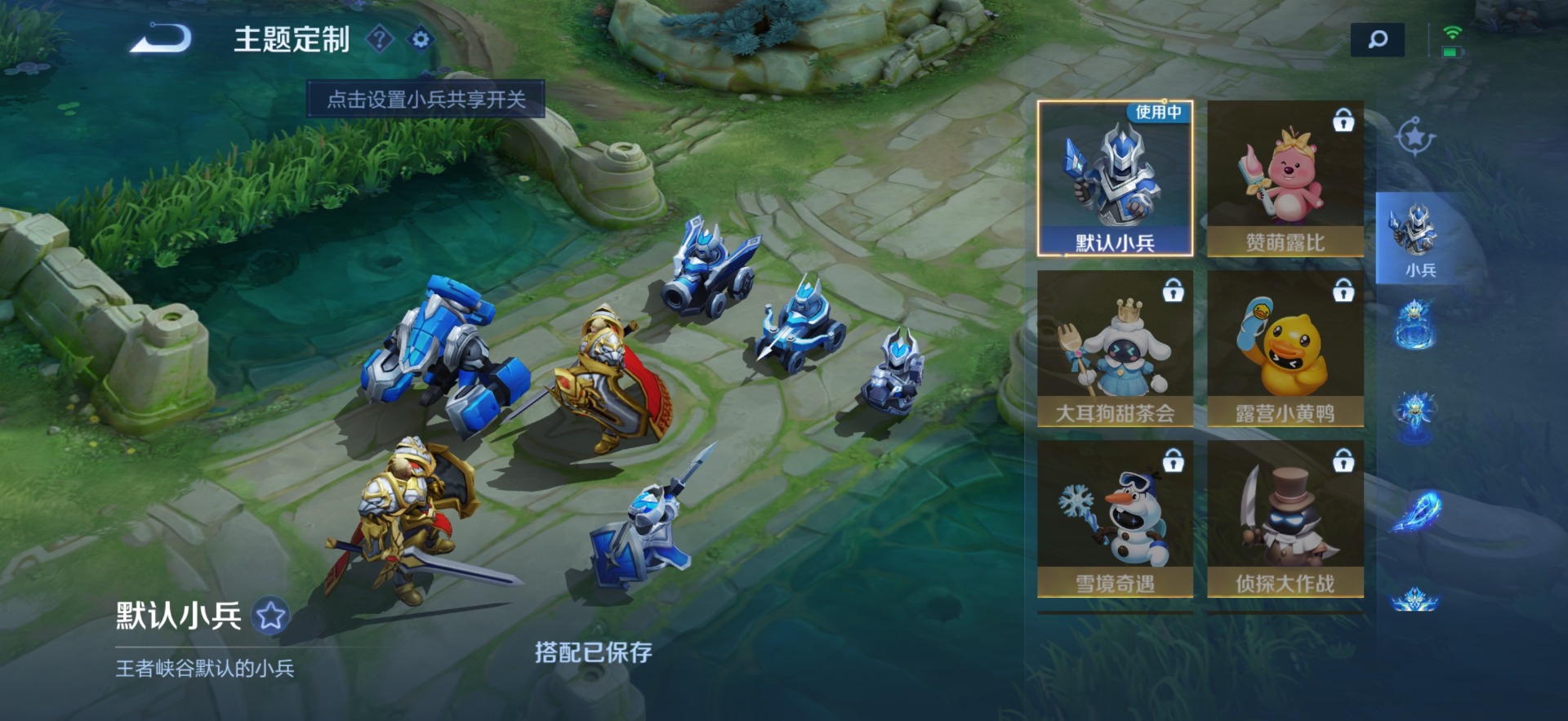 夏侯惇朔风刀,老夫子醍醐杖,沈梦溪大漠名商,盾山御銮,曹操烛龙,苏烈千军破阵,典韦穷奇,达摩沙漠行僧,牛魔御旌,鲁班七号狮舞东方,兰陵王金庭之子,裴擒虎擒涛扼浪,鲁班大师探海日志,明世隐疑决卦,白起狰,鬼谷子原初探秘者,张良古海寻踪,桑启海盐诗旅,狄仁杰万华元夜,芈月重明,程咬金演武夺筹,扁鹊炼金王,李元芳云中旅人,弈星混沌棋,虞姬凯尔特女王,米莱狄御霄,钟馗神迹守卫,钟馗驱傩正仪,狂铁御狮,太乙真人饕餮