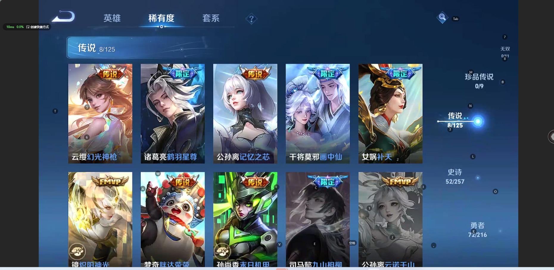 - [12294219]V8 2典藏 31传说 125英雄 336皮肤 典藏英雄武则天 可修改实名 优质装备:鸣剑·曳影,九霄神辉(木兰典藏),黄金狮子座,黄金射手座,冠军飞将,云鹰飞将(小将军),绛天战甲(鸡嘴战神),猫影幻舞,一念神魔,末日机甲-孙尚香(绿蚂蚱),仲夏夜之梦(大飞蛾),零号·赤焰,海洋之心,地狱之眼,遇见胡旋,末日机甲-孙策,山海·炽霜斩(李信年限),惊梅引,霜月吟,玄雷天君 传说皮:落雪白狼 珍宝阁皮:妄想食味,优雅恋人,蔷薇恋人 限定皮:愿照·九州拓(澜年限),愿照·山河定(司空震年限),陌上桑,鸣野蒿,至尊宝,白虎志(电光耗子),凤求凰(白切鸡),武陵仙君(小桃花),异界灵契(白毛香),傲雪梅枪,白晶晶,时雨天司(水龙头),飞衡(韩信年限),瑞麟志(木兰年限),遇见飞天,高山流水,无限倾心-虞姬,五谷丰年,青龙志(铠年限),冰锋战神,武圣,游园惊梦,梁祝,御风骁将(吕布年限),天狼狩猎者,逐梦之音,李小龙,逐梦之影,朱雀志(守约年限),如梦令-后羿,霸王别姬-虞姬,默契交锋-花木兰,孙行者,猪悟能,一生所爱,大圣娶亲,天魔缭乱,青春决赛季 史诗皮:赞萌露比,器灵·浮梦炉,化蝶舞,灵蛊蚀心,龙之律动,石田雨龙,破空之剑,蒙犽顽岩魄,琥珀纪元伽罗,百相守梦-百里守约,守夜人,百相守梦-黄忠,紫霞仙子,电玩小子(小书包),白龙吟,黄金分割率,特工魅影,千年之狐,永昼,江河有灵,雪夜绮愿(周瑜),蒙恬荣光圣徽,龙骑士(小龙虾),暗夜猫娘,无限星赏官,冰冠公主,末日机甲-吕布,猫狗日记-孙策,猫狗日记-大乔,时之恋人-孙尚香,乱世虎臣,节奏热浪,修罗,女仆咖啡,摇滚巨星,水果甜心,绅士熊喵,天才门将,星夜王子,心灵骇客,功夫厨神,德古拉伯爵,暗隐猎兽者,幽灵船长,鬼剑武藏,心灵战警,天秀·启明,舞动绿茵,地狱岩魂,诗语江南,纤云弄巧,繁星吟游(呼啦呼啦),拒霜思,缤纷独角兽,乘风破浪,逐浪之夏,月团寄思,水晶猎龙者,曙光守护者,箭羽风息,金属风暴,原初追逐者,圣诞狂欢,圣诞恋歌,鹰眼统帅,暗夜贵公子,魅力维加斯,黎明之约,无心,未来纪元-赵云