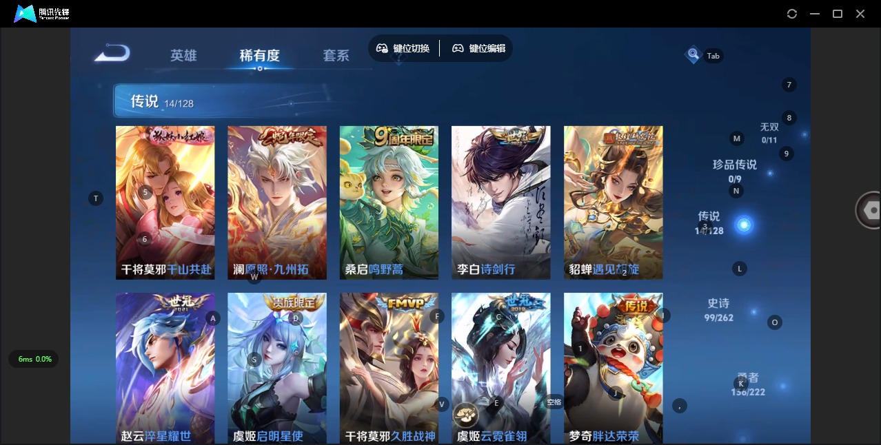 - [11677379]V6 1典藏 2珍品传说 1传说 122英雄 168皮肤 可修改实名 优质装备:拾光映像(瑶典藏),怪盗基德,器灵·落星盏 珍宝阁皮:女武神 限定皮:逐霄战戟,鸣野蒿,高山流水 史诗皮:鸭鸭历险记-刘禅,器灵·浮梦炉,化蝶舞,星界战将,谪仙醉月,龙之律动,茶境仙,撼地雄心,破空之剑,战舞者,蒙犽顽岩魄,百相守梦-百里守约,百相守梦-黄忠,紫霞仙子,黄金分割率,特工魅影,江河有灵,魅语,偶像歌手,猫狗日记-孙策,猫狗日记-大乔,节奏热浪,女仆咖啡,摇滚巨星,水果甜心,绅士熊喵,天才门将,心灵骇客,德古拉伯爵,暗隐猎兽者,幽灵船长,鬼剑武藏,暗渊魔法,心灵战警,乐园奇幻夜,舞动绿茵,诗语江南,缤纷独角兽,乘风破浪,逐浪之夏,水晶猎龙者,圣诞狂欢,圣诞恋歌,鹰眼统帅,黎明之约,赏金猎手