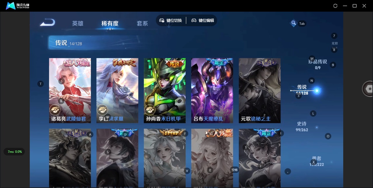 - [11254601]V7 7传说 123英雄 187皮肤 可修改实名 优质装备:炽阳神光,一念神魔,地狱火,仲夏夜之梦(大飞蛾),无双飞将,山海·苍雷引(电光曜子) 珍宝阁皮:妄想食味 限定皮:鸣野蒿,飞衡(韩信年限),遇见飞天,李小龙,山海·玄木吟(马可年限) 史诗皮:龙之律动,百相守梦-黄忠,特工魅影,千年之狐,末日机甲-吕布,猫狗日记-孙策,乱世虎臣,节奏热浪,修罗,摇滚巨星,水果甜心,绅士熊喵,天才门将,暗隐猎兽者,幽灵船长,鬼剑武藏,繁星吟游(呼啦呼啦),缤纷独角兽,乘风破浪,逐浪之夏,水晶猎龙者,曙光守护者,箭羽风息,圣诞狂欢,圣诞恋歌,鹰眼统帅,赏金猎手,无心,未来纪元-赵云