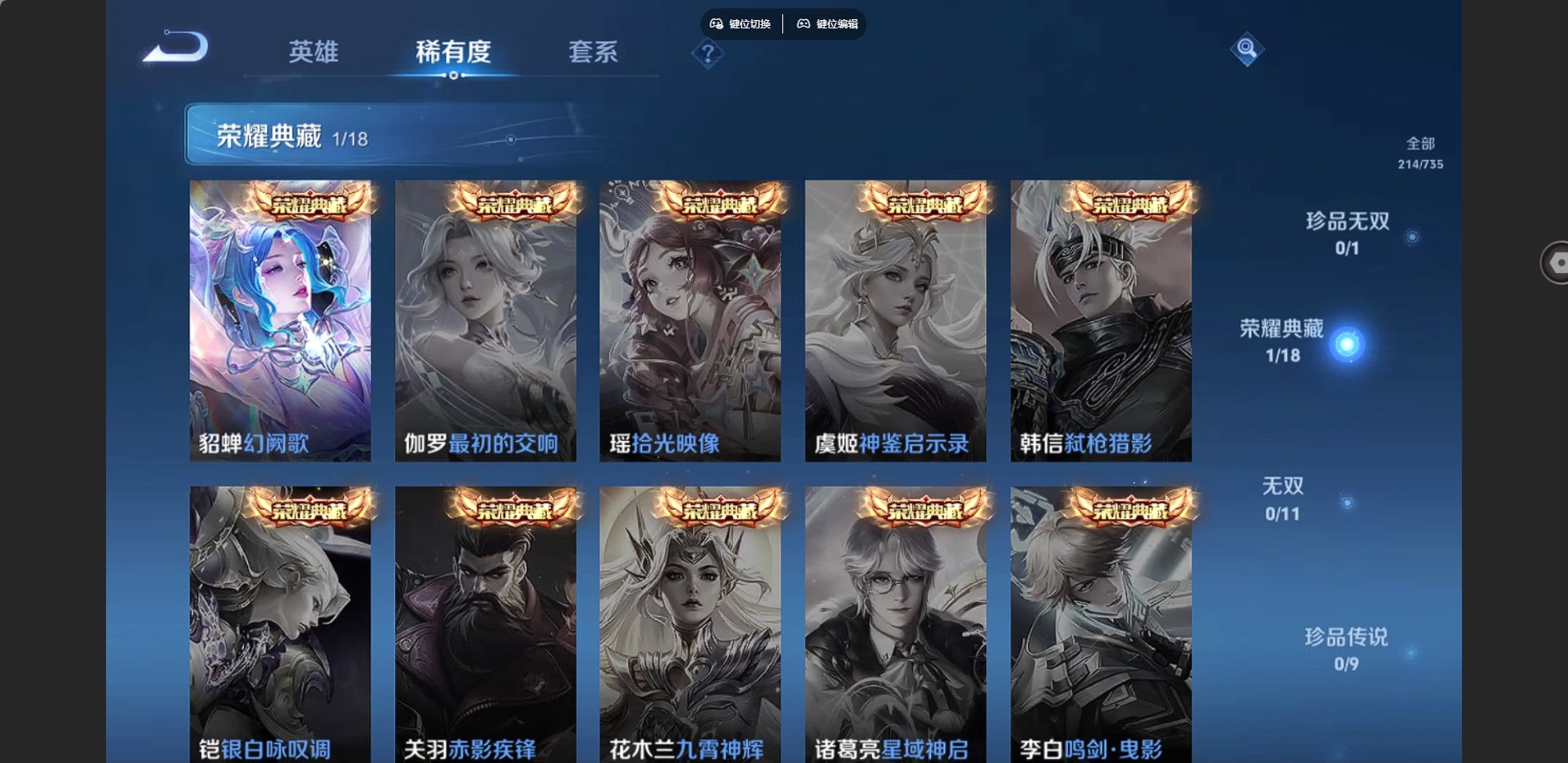 - [11676379]V7 1典藏 1传说 124英雄 180皮肤 可修改实名 荣耀水晶:鸣剑·曳影 传说皮:地狱火 珍宝阁皮:女武神 限定皮:遇见飞天,高山流水,梁祝,李小龙,朱雀志(守约年限),孙行者,猪悟能 史诗皮:石田雨龙,冰冠公主,偶像歌手,晚萤,女仆咖啡,摇滚巨星,水果甜心,天才门将,心灵骇客,时之奇旅-安琪拉,功夫厨神,德古拉伯爵,暗隐猎兽者,鬼剑武藏,纤云弄巧,繁星吟游(呼啦呼啦),拒霜思,缤纷独角兽,乘风破浪,水晶猎龙者,金属风暴,圣诞狂欢,圣诞恋歌,鹰眼统帅,魅力维加斯
