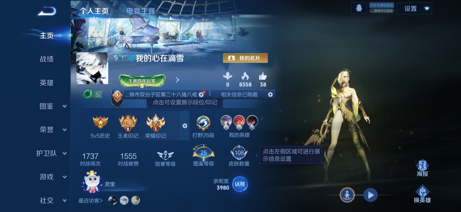 - [11817743]V8 2典藏 6传说 125英雄 247皮肤 典藏英雄武则天 可修改实名 优质装备:星空梦想(太空人),全息碎影(猴子典藏),黄金狮子座,冠军飞将,零号·赤焰,海洋之心 珍宝阁皮:胡桃夹子 限定皮:至尊宝,凤求凰(白切鸡),神威(电光马子),遇见飞天,梁祝,李小龙,逐梦之光,一生所爱,大圣娶亲 史诗皮:百相守梦-黄忠,苍穹之光,电玩小子(小书包),白龙吟,黄金分割率,特工魅影,千年之狐,偶像歌手,魅语,冰冠公主,猫狗日记-孙策,乱世虎臣,节奏热浪,修罗,女仆咖啡,摇滚巨星,天才门将,星夜王子,心灵骇客,功夫厨神,德古拉伯爵,暗隐猎兽者,幽灵船长,鬼剑武藏,心灵战警,纤云弄巧,乘风破浪,逐浪之夏,水晶猎龙者,曙光守护者,原初追逐者,圣诞狂欢,圣诞恋歌,鹰眼统帅,魅力维加斯,黎明之约,未来纪元-赵云