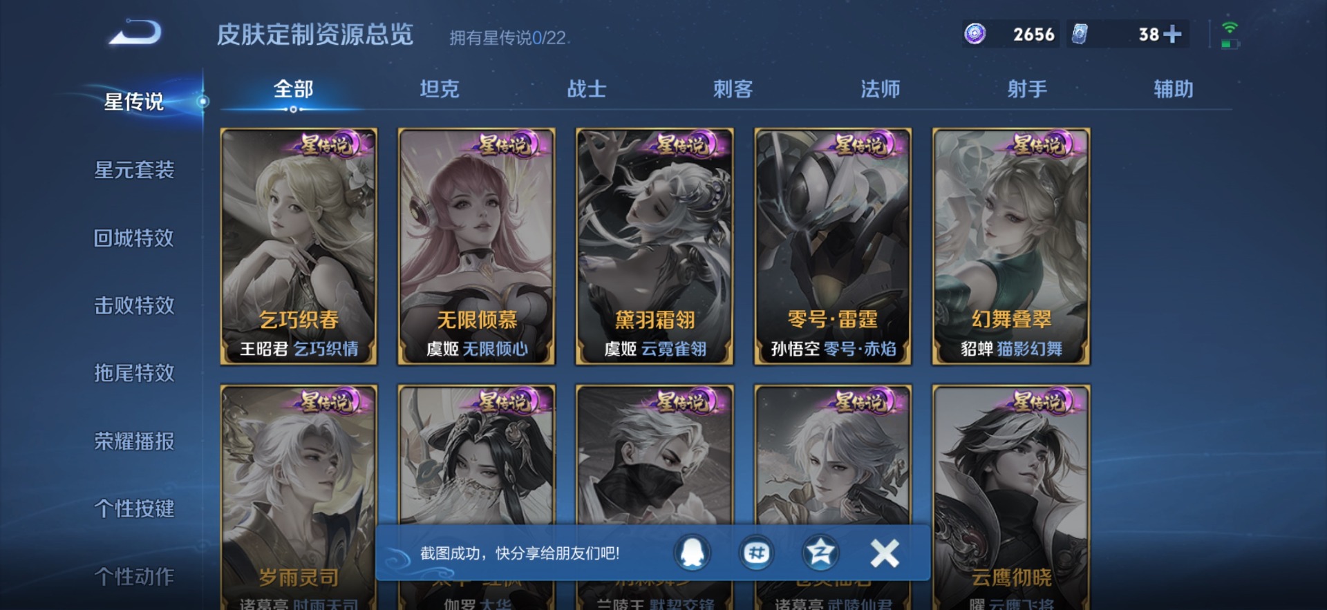 - [11600681]V10 3典藏 2珍品传说 66传说 126英雄 505皮肤 典藏英雄武则天 可修改实名 荣耀水晶:神鉴启示录,天鹅之梦(小乔典藏),倪克斯神谕(宇宙婆娘) 珍品传说:朽木白哉,黑崎一护 传说皮:典韦战鼓燎原,云诺千山,幻光神枪,游龙清影(小青龙),山海·炽霜斩(李信年限),山海·琳琅生(小乔年限),黄金射手座,黄金白羊座,零号·赤焰,地狱火,仲夏夜之梦(大飞蛾),海洋之心,地狱之眼,末日机甲-孙尚香(绿蚂蚱),云霓雀翎,一念神魔,淬星耀世,久胜战神,猫影幻舞,云鹰飞将(小将军),炽阳神光,无双飞将,音你心动-小乔,音你心动-周瑜,胖达荣荣,乞巧织情,时之恋人-刘备(电焊工),飞鸢探春,绛天战甲(鸡嘴战神),超时空战士-狄仁杰,末日机甲-孙策,挚爱之约,挚爱花嫁,音你闪耀(rap皮),碎云,神器·狴犴令,山海·苍雷引(电光曜子),炽翼辉光(娃娃菜牛角包),霜月吟,澜逐花归海,艾琳觅芳踪 珍宝阁皮:优雅恋人,蔷薇恋人,女武神 限定皮:愿照·九州拓(澜年限),愿照·山河定(司空震年限),逐霄战戟,鸣野蒿,至尊宝,白虎志(电光耗子),凤求凰(白切鸡),凤凰于飞,太华(伽罗年限),武陵仙君(小桃花),异界灵契(白毛香),傲雪梅枪,补天,寅虎·展翼(孙膑年限),星穹之声,绯月行,时之彼端,白鹤梁神女,白晶晶,时雨天司(水龙头),神威(电光马子),飞衡(韩信年限),玄嵩(庄周年限),山海·碧波行(瑶年限),瑞麟志(木兰年限),遇见飞天,高山流水,诗剑行,无限倾心-虞姬,匿光决锋者,怒海麟威,降魔,五谷丰年,青龙志(铠年限),冰锋战神,幽恒(沐浴露),武圣,天狼运算者,梁祝,御风骁将(吕布年限),天狼狩猎者,龙胆,逐梦之星,烈魂,岱宗(典韦年限),天狼溯光者,天狼征服者,奔雷神使(牛魔年限),祈雪灵祝(雪兔子),天狼绘梦者,李小龙,逐梦之光,玄武志(苏烈年限),朱雀志(守约年限),永曜之星,辉光之辰,如梦令-嫦娥,如梦令-后羿,奇迹圣诞,默契交锋-兰陵王,默契交锋-花木兰,孙行者,大圣娶亲,天魔缭乱,青春决赛季,冰霜恋舞曲,乒乒小将,蜜橘之夏,神奇女侠,匿光追影者,女儿国国王,寅虎·御盾(廉颇年限),寅虎·瑞焰(虎皮蛋子),寅虎·心曲(虎婆),寅虎·赤拳(老虎年限),时之祈愿-云中君,时之祈愿-瑶(瑶传限),玉兔公主,唐三藏,枫霜尽,时之奇旅-妲己,神器·万象笔,梦圆繁星,山海·