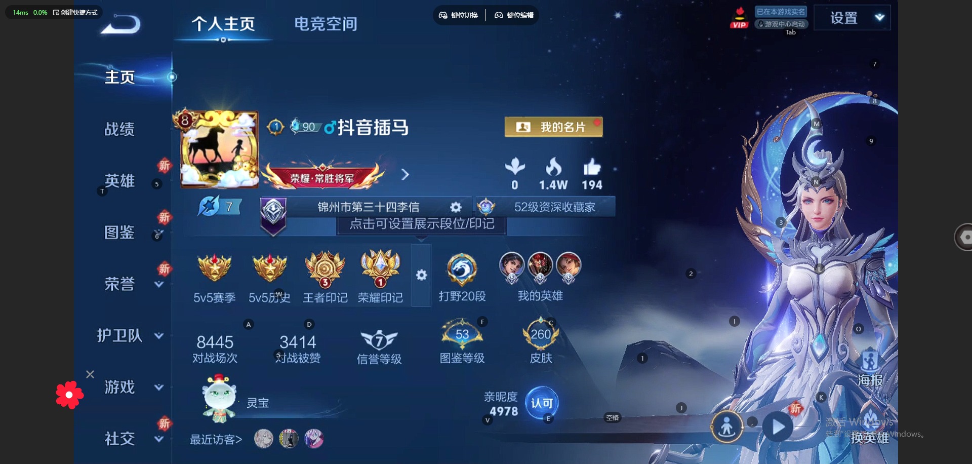 - PX_2111249-[金标雅典娜 金标诸葛亮 妹子号 紫瑶!!!]贵族等级: V6 英雄数: 124 皮肤数: 289 荣耀水晶: 星域神启 无双皮: 青丘·九尾,碎月剑心,小乔时之魔女,韩信群星魔术团 星传说: 时之愿境,金色仲夏夜,玉鸾吟 传说皮: 绛天战甲,猫影幻舞,炽阳神光,一念神魔,云霓雀翎,末日机甲-孙尚香,仲夏夜之梦,乞巧织情,游龙清影,挚爱之约,挚爱花嫁,无双飞将,记忆之芯,青丘