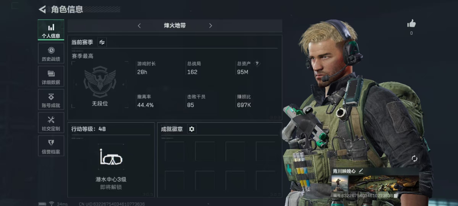 - [11288326]总资产:212.9M 1近战传说 6传说枪械 哈夫币:82.912K 顶级安全箱(3×3)9.15号到期 可二次 可修改实名 优质装备:近战-北极星,顶级安全箱(3x3) 烽火地带段位:三角洲巅峰 全面战场段位:无段位 传说武器皮肤:复合弓-黑-天际线,QCQ171冲锋枪-北极星,勇士冲锋枪-能天使-午夜邮差,725双管霰弹枪-送葬人-无题密令,K437突击步枪-北极星 史诗武器皮肤:M700狙击步枪-蝮蛇,PKM通用机枪-荒野求生,MP5冲锋枪-深海恐惧,SR-3M紧凑突击步枪-荒野求生,SG552突击步枪-深海恐惧,AKM突击步枪-林中猎手,M16A4突击步枪-竞赛选手,SVD狙击步枪-荒野求生,M1014霰弹枪-林中猎手,SV-98狙击步枪-林中猎手,PTR-32突击步枪-英雄,PSG-1射手步枪-无垢,AS Val突击步枪-典狱官,QBZ95-1突击步枪-曙光