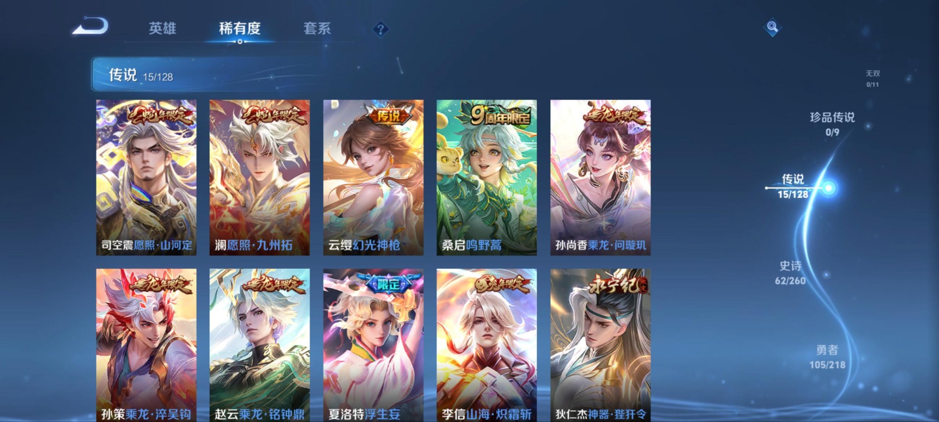 金蝉唐三藏,廉颇寅虎·御盾,苏烈玄武志,司空震愿照·山河定,花木兰瑞麟志,马可波罗山海·玄木吟,桑启鸣野蒿,孙悟空孙行者,瑶时之祈愿,瑶山海·碧波行,澜愿照·九州拓,橘右京枫霜尽