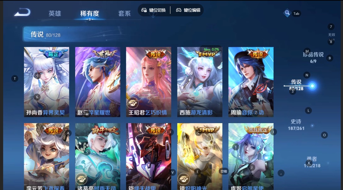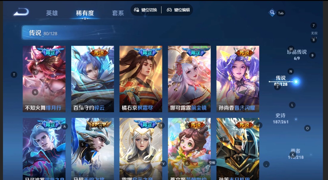 - PX_2104954-Q/最强王者/336皮肤/126英雄/9典藏/0珍品无双/3无双/0珍品传说/48传说/90史诗/10稀有英雄 【9 典藏皮肤】鸣剑·曳影 李白,全息碎影 孙悟空,天鹅之梦 小乔,倪克斯神谕 武则天,星空梦想 鲁班七号,无限飓风号 夏侯惇,九霄神辉 花木兰,大秦宣太后 芈月,星域神启 诸葛亮, 【3 无双皮肤】离恨烟 公孙离,花合斗 不知火舞,群星魔术团 韩信, 【48 传说