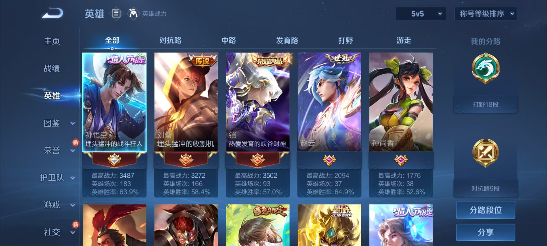 - [12175459]V5 123英雄 152皮肤 可修改实名 珍宝阁皮:优雅恋人,蔷薇恋人 限定皮:至尊宝,五谷丰年,游园惊梦,梁祝,李小龙 史诗皮:百相守梦-黄忠,特工魅影,雪夜绮愿(周瑜),猫狗日记-孙策,节奏热浪,女仆咖啡,摇滚巨星,水果甜心,星夜王子,幽灵船长,繁星吟游(呼啦呼啦),拒霜思,鹰眼统帅,未来纪元-赵云