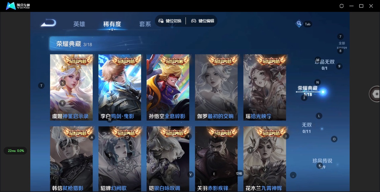 - [11528769]V7 1典藏 1珍品传说 3传说 123英雄 243皮肤 可修改实名 优质装备:拾光映像(瑶典藏),大耳狗之梦 珍宝阁皮:妄想食味,蔷薇恋人 限定皮:愿照·福禄聚(蔡文姬年限),愿照·众生和(妲己年限),鸣野蒿,山海·碧波行(瑶年限),五谷丰年,梁祝,时之奇旅-妲己 史诗皮:器灵·浮梦炉,龙之律动,茶境仙,蔬乡物语(鲁班七号),百相守梦-黄忠,遇见神鹿,江河有灵,匿光侦查者,高渐离燃音魔法,青蛇,偶像歌手,电玩·爆裂旋风,猫狗日记-孙策,猫狗日记-大乔,节奏热浪,修罗,女仆咖啡,摇滚巨星,水果甜心,绅士熊喵,心灵骇客,鬼剑武藏,心灵战警,舞动绿茵,地狱岩魂,纤云弄巧,拒霜思,缤纷独角兽,逐浪之夏,水晶猎龙者,唤灵魅影,圣诞狂欢,圣诞恋歌,鹰眼统帅,魅力维加斯,奇遇舞章,无心