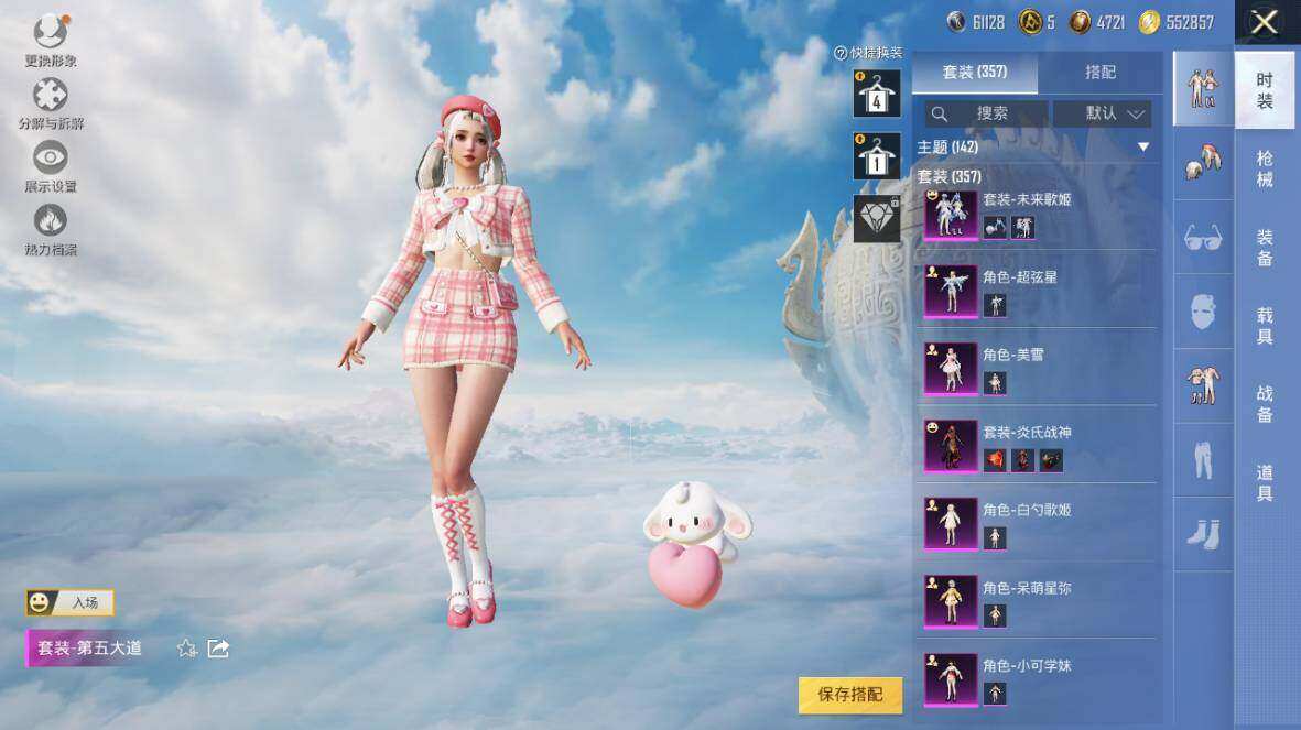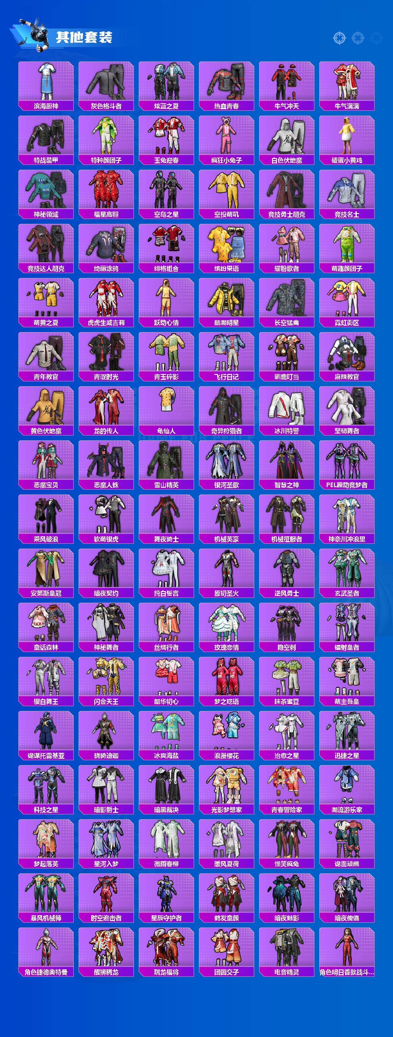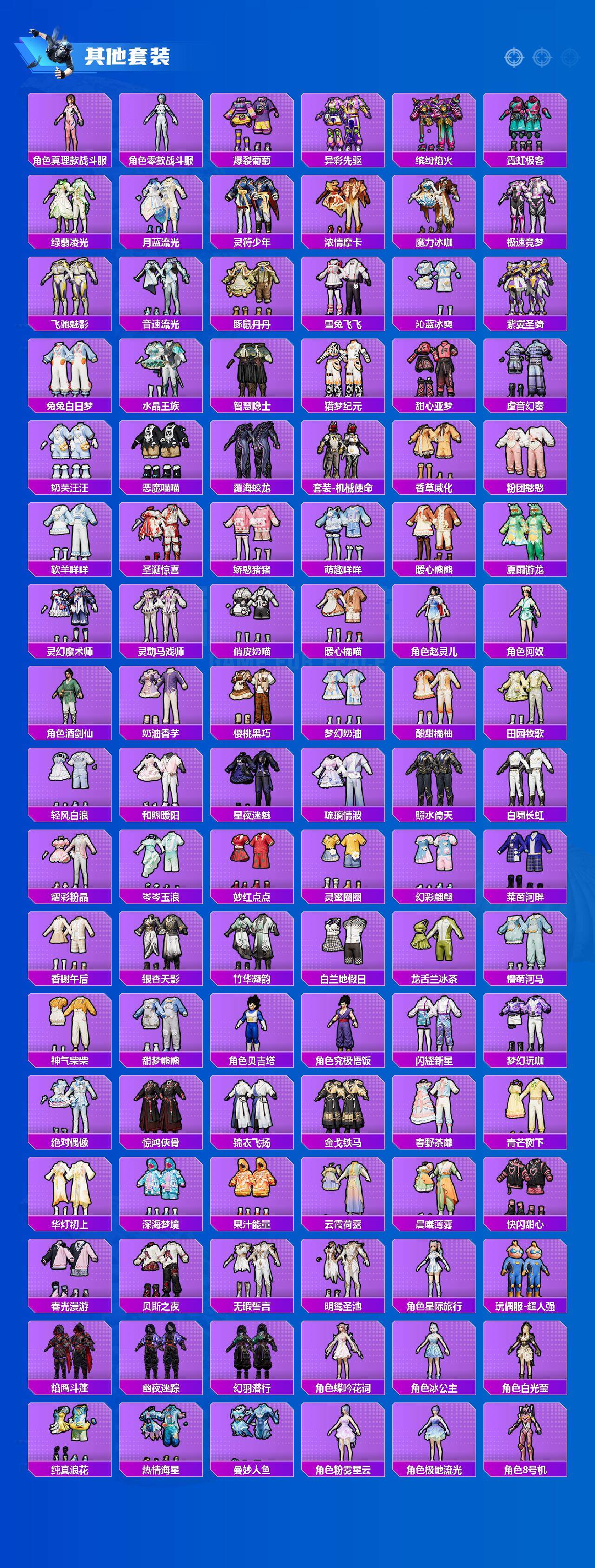 【粉色套装】:粉装-深渊皇后,粉装-梦幻火箭,粉装-草莓生巧,粉装-冰霜白皇,粉装-炙焰红王,粉装-香水柠檬,粉装-暗翼战神,粉装-王牌四分卫,粉装-馨动时刻,粉装-山涧鹿灵,角色-洛天依,角色-初号机款机体服,粉装-蓝莓炮弹,粉装-精灵娃娃,粉装-海盐物语,粉装-恐龙拽拽,粉装-绚丽摇曳,粉装-闪耀律动,粉装-橘柚倾心,粉装-赤焰黑爵,粉装-紫电风暴,粉装-炙焰牛王,粉装-星夜魔法师,粉装-傲雪凌霜,粉装-霁雪冰心,粉装-彩虹甜喵,粉装-旋转彩虹,粉装-冰川粉黛,粉装-冰川红玫,粉装-霞光圣骑,粉装-寒光使者,粉装-暗夜鎏金,粉装-第五大道,粉装-雪梅暗香,粉装-心之回忆,超级赛亚人-贝吉塔,角色-白勺歌姬,角色-呆萌星弥,角色-小可学妹,粉装-炎氏战神,粉装-未来歌姬,角色-猩猩队长,粉装-闲梦青缨,角色-白兰星,粉装-憨憨奶龙,粉装-傲傲奶龙,角色-圣堂之誓,角色-美