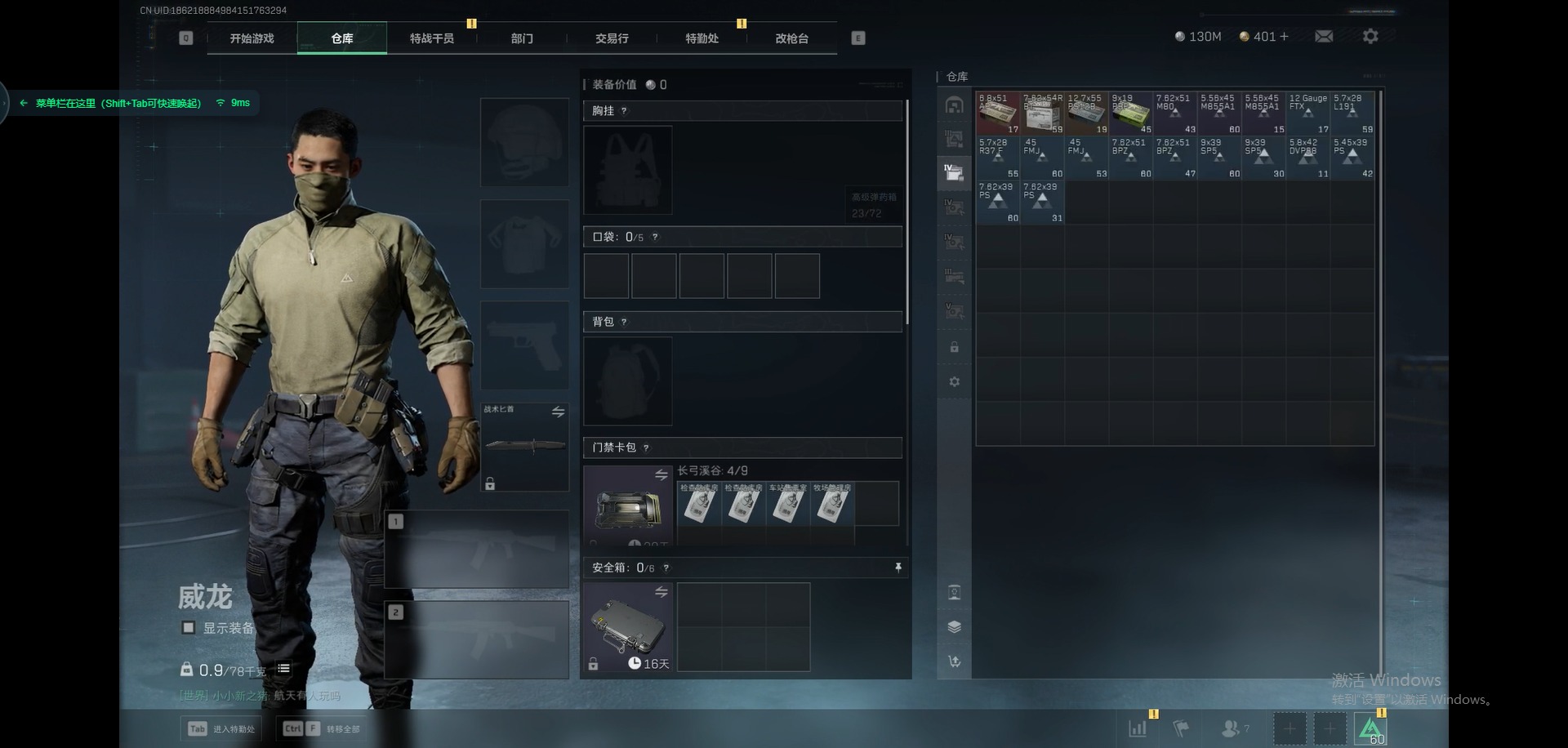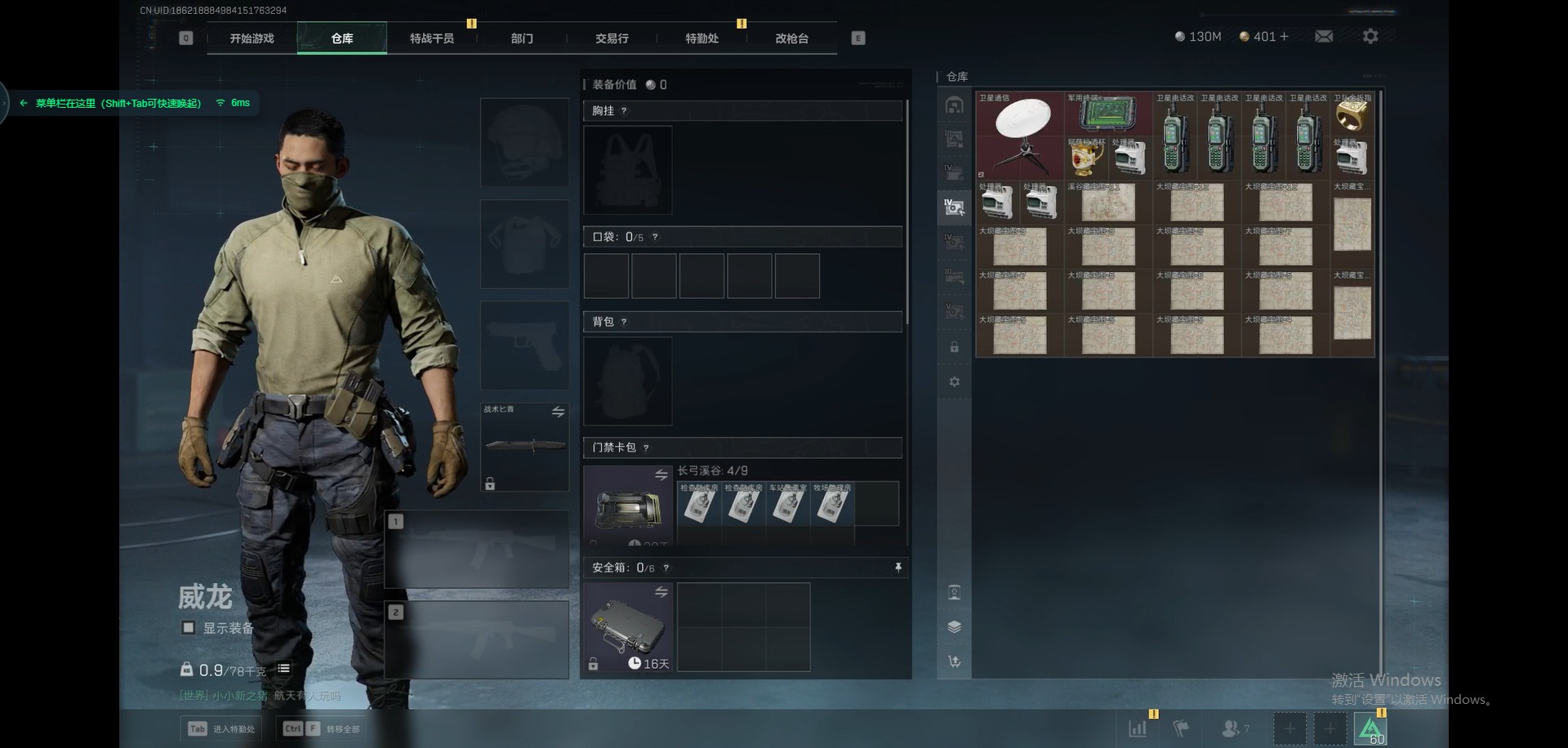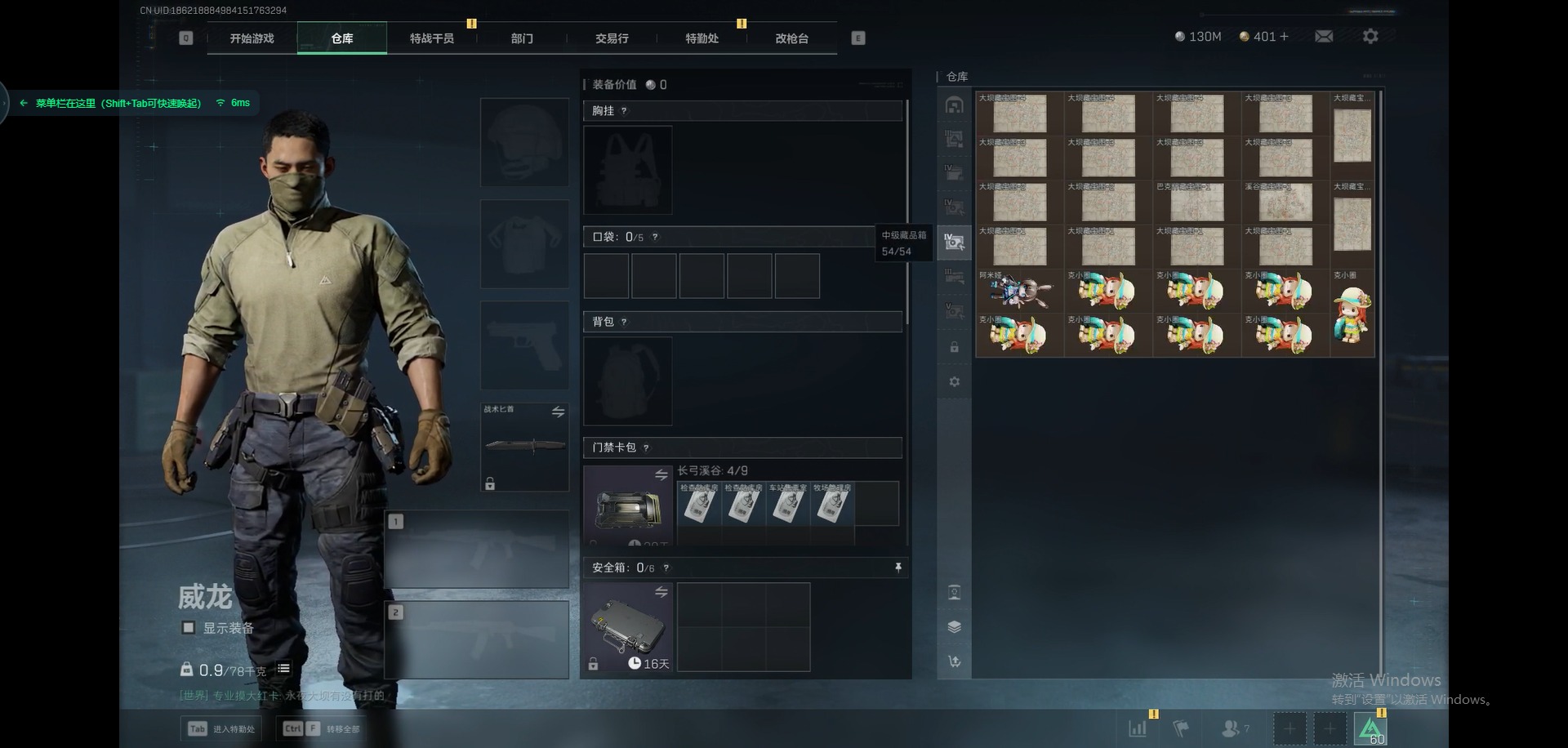 - [11818538]总资产:89.5M 4传说枪械 哈夫币:33.252K 进阶安全箱(2×2)9.15号到期 可二次 可修改实名 烽火地带段位:黑鹰 全面战场段位:无段位 传说武器皮肤:SMG45冲锋枪-骑士,CAR-15突击步枪-阿米娅,复合弓-黑-天际线,勇士冲锋枪-能天使-午夜邮差