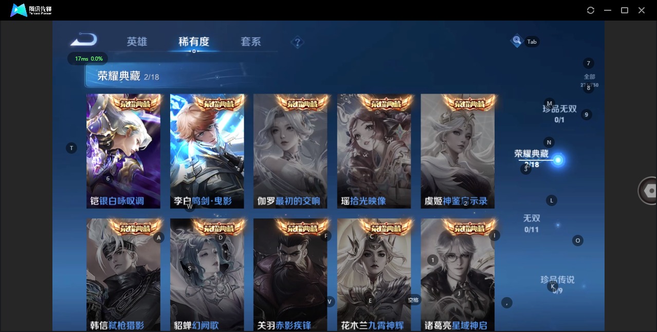 - PX_2017593-实名: 可修改 贵族等级: V8 英雄数: 122 皮肤数: 253 珍品传说: 器灵·落星盏 传说皮: 猫影幻舞,久胜战神,炽阳神光,一念神魔,李逍遥,时之恋人-刘备,淬星耀世,末日机甲-孙策,挚爱之约,无双飞将,乘龙·问璇玑,幻光神枪 限定皮: 李小龙,祈雪灵祝,时雨天司,天狼溯光者,神威,乒乒小将,天狼征服者,天狼运算者,天狼绘梦者,白虎志,如梦令-后羿,大圣娶亲,孙行