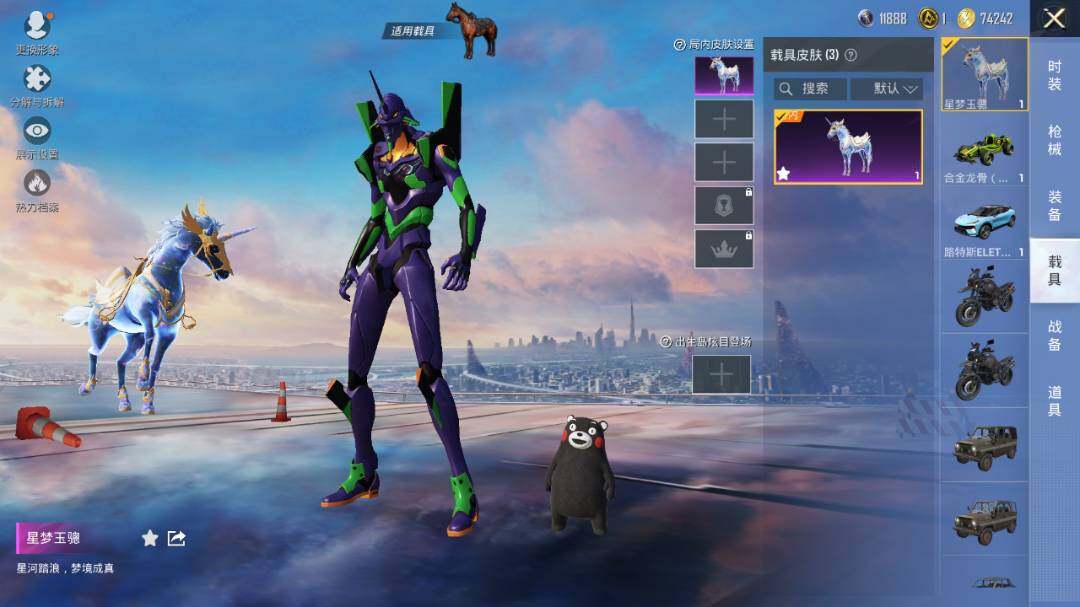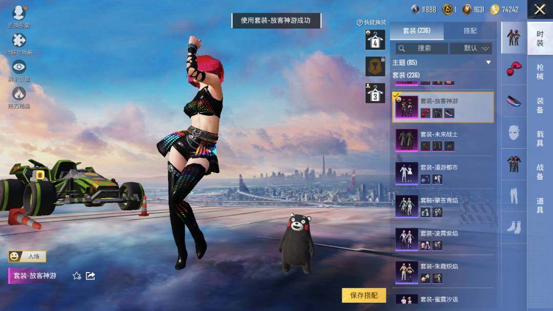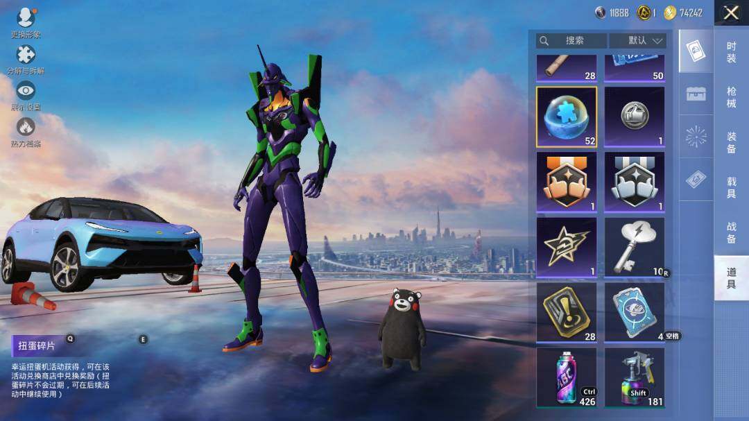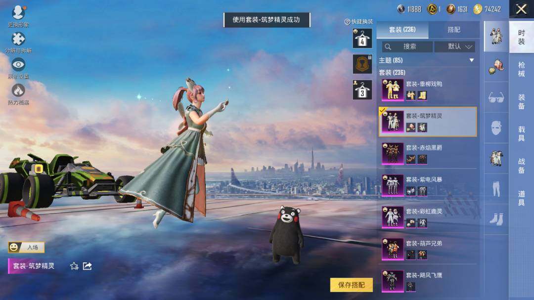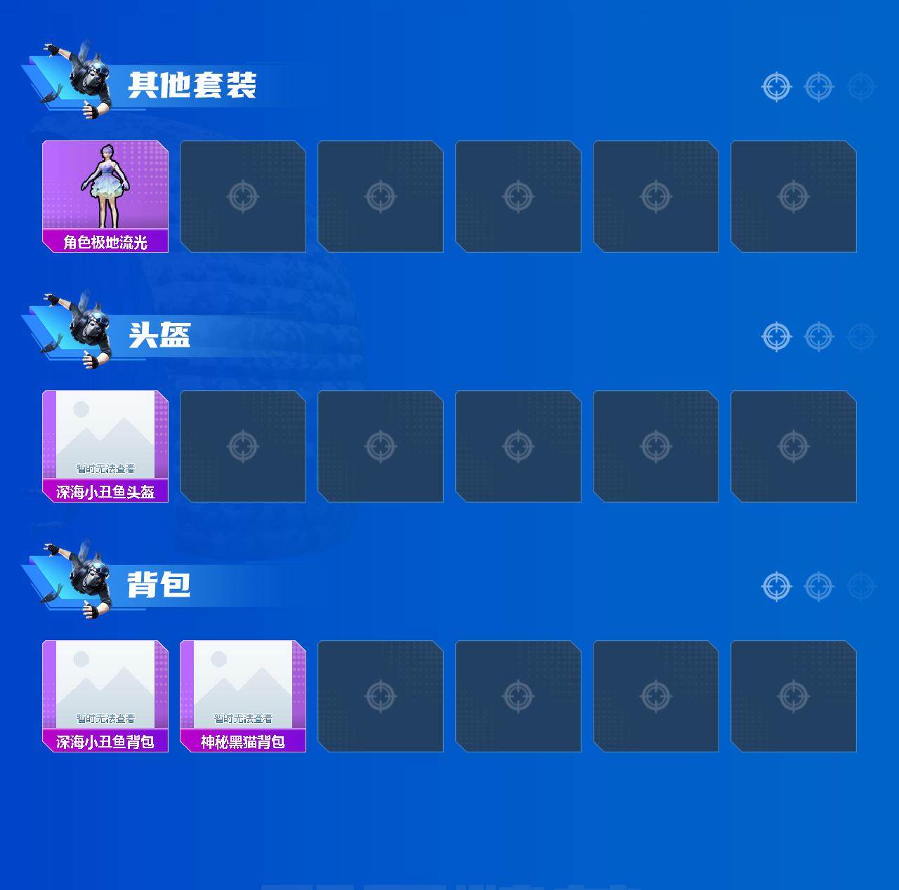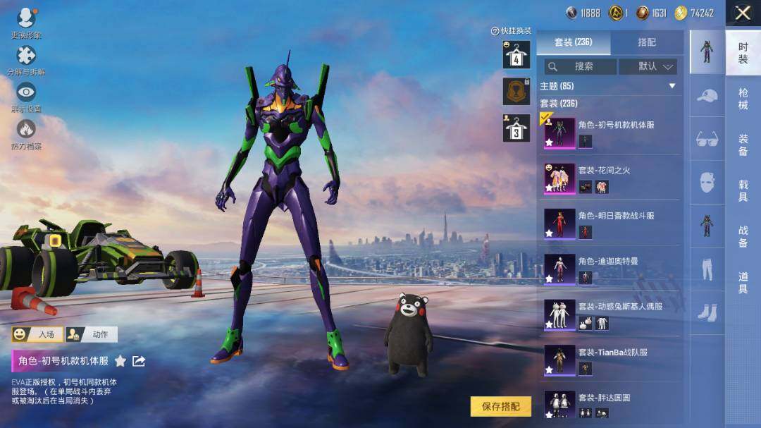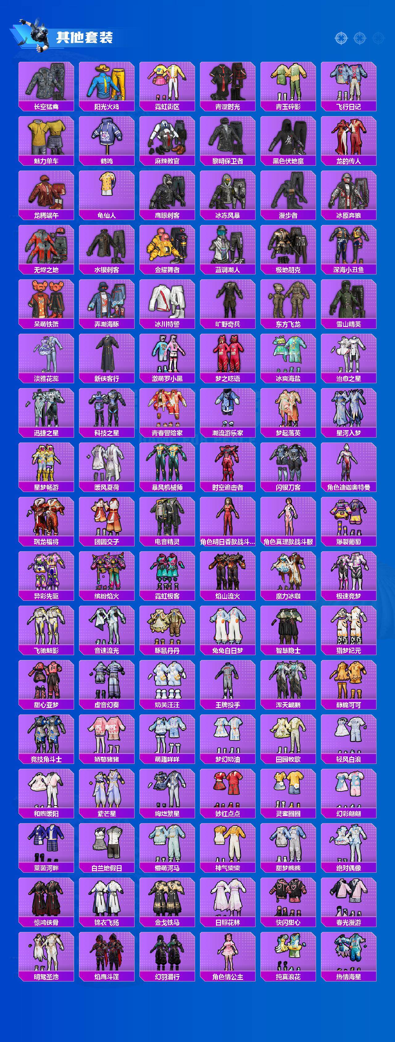 套装-紫电风暴,套装-筑梦精灵,套装-未来战士,套装-音爆索尼克,套装-彩虹鹿灵,套装-琉璃脉冲,套装-未来歌姬,角色-初号机款机体服,套装-炙焰红王,套装-垂柳戏鸭,套装-纯珍童话,套装-赤焰黑爵,套装-缤纷油彩,套装-飓风飞鹰,套装-放客神游,套装-创世·救赎,套装-葫芦兄弟,套装-天禅智恒,套装-花间之火