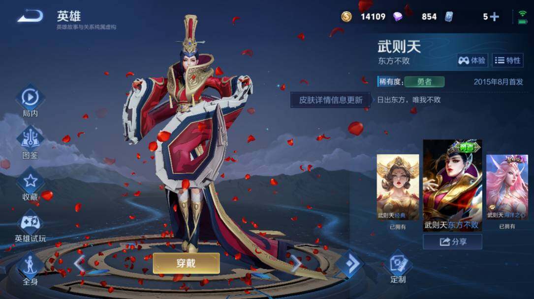 武则天女帝,小乔天鹅之梦,武则天倪克斯神谕,李白鸣剑·曳影,诸葛亮星域神启,花木兰九霄神辉,貂蝉幻阙歌