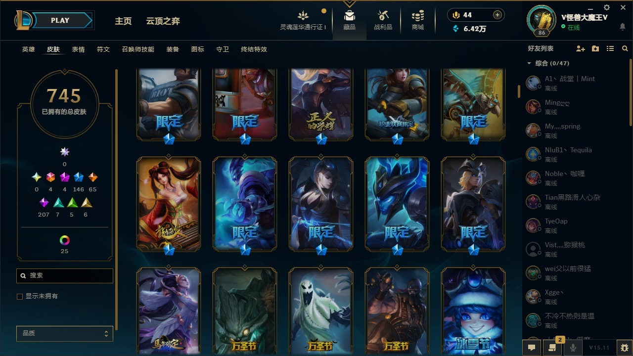- [11522960]V6 7传说 123英雄 200皮肤 可修改实名 优质装备:猫影幻舞,超时空战士-狄仁杰,挚爱之约,无双飞将,鹤羽星尊,澜逐花归海 珍宝阁皮:妄想食味,玩趣恶龙 限定皮:鸣野蒿,高山流水,五谷丰年,青龙志(铠年限),游园惊梦,梁祝,天狼狩猎者,李小龙,山海·玄木吟(马可年限) 史诗皮:化蝶舞,星界特工,星界战将,百相守梦-黄忠,黄金分割率,特工魅影,千年之狐,电玩·爆裂旋风,江河有灵,蒙恬荣光圣徽,冰冠公主,末日机甲-吕布,猫狗日记-孙策,节奏热浪,摇滚巨星,水果甜心,天才门将,星夜王子,德古拉伯爵,幽灵船长,鬼剑武藏,心灵战警,天秀·启明,舞动绿茵,繁星吟游(呼啦呼啦),缤纷独角兽,逐浪之夏,水晶猎龙者,曙光守护者,箭羽风息,金属风暴,原初追逐者,圣诞狂欢,圣诞恋歌,鹰眼统帅,天秀·音浪,无心,未来纪元-赵云