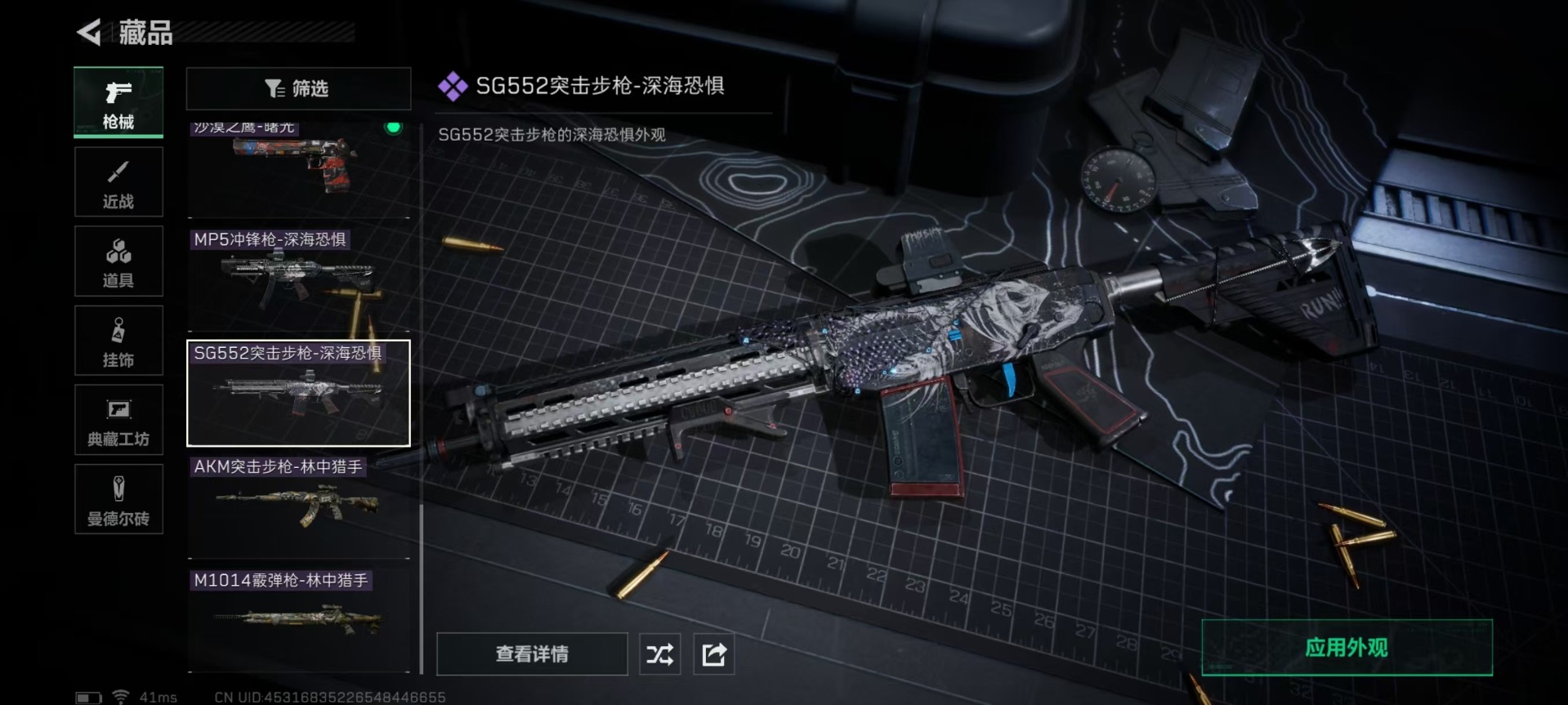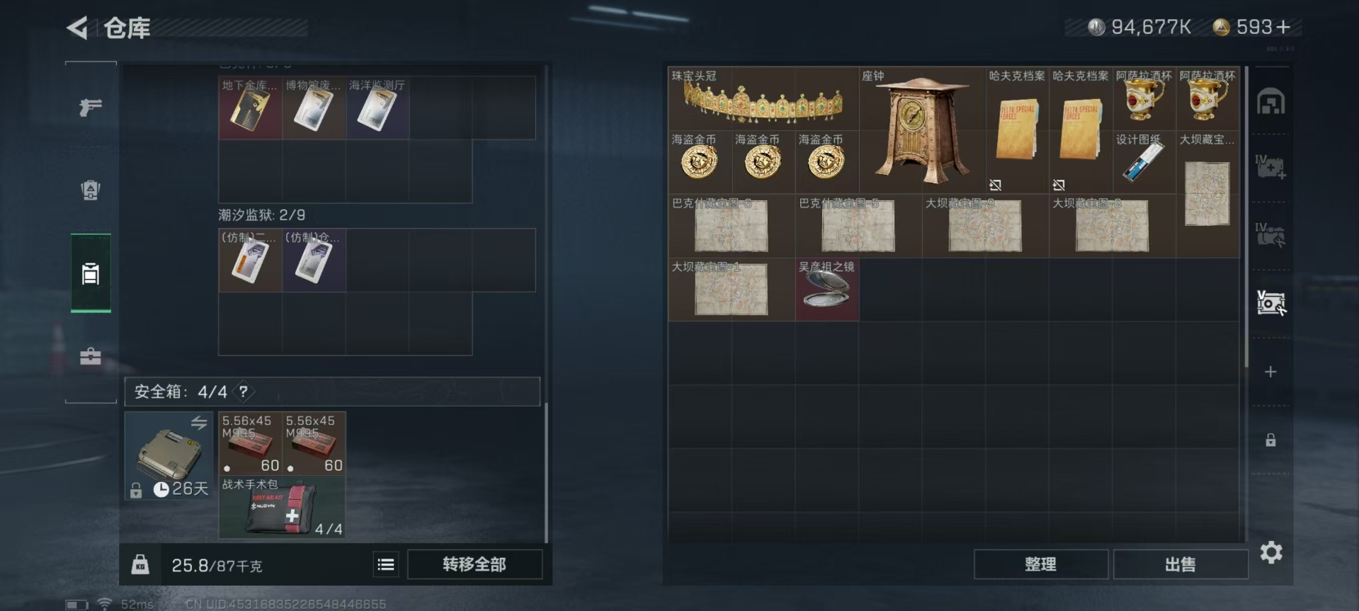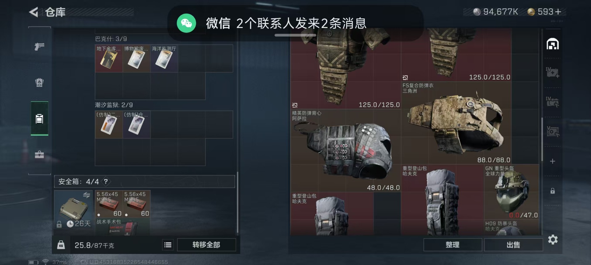 [12226788]总资产:139M 7传说枪械 哈夫币:94.677K 进阶安全箱(9.17到期) 可二次 可修改实名 烽火地带段位:钻石 全面战场段位:无段位 传说武器皮肤:SMG45冲锋枪-骑士,CAR-15突击步枪-阿米娅,AK-12突击步枪-特斯拉线圈,SR-3M紧凑突击步枪-特斯拉线圈,UZI冲锋枪-特斯拉线圈,勇士冲锋枪-能天使-午夜邮差,Vector冲锋枪-能天使-午夜邮差 史诗武器皮肤:MP5冲锋枪-深海恐惧,SG552突击步枪-深海恐惧,AKM突击步枪-林中猎手,M16A4突击步枪-竞赛选手,M1014霰弹枪-林中猎手,M250通用机枪-囚徒,SV-98狙击步枪-囚徒,SCAR-H战斗步枪-囚徒,沙漠之鹰-曙光