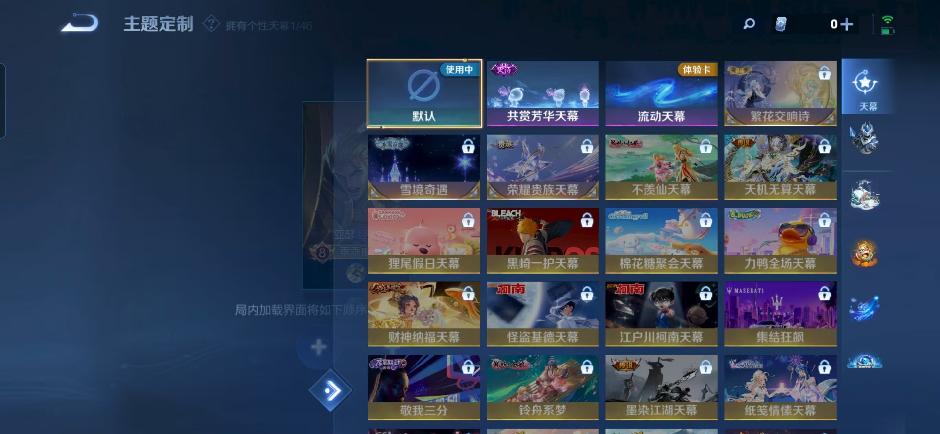 夏侯惇朔风刀,老夫子醍醐杖,沈梦溪星空之诺,沈梦溪大漠名商,盾山御銮,曹操烛龙,孙膑妖精王,苏烈千军破阵,典韦穷奇,典韦蓝屏警告,达摩沙漠行僧,牛魔御旌,鲁班七号狮舞东方,吕布猎兽之王,庄周蜃楼王,兰陵王金庭之子,裴擒虎擒涛扼浪,鲁班大师探海日志,明世隐疑决卦,白起狰,亚瑟狮心王,鬼谷子原初探秘者,张良古海寻踪,女娲朔望之晖,桑启海盐诗旅,狄仁杰万华元夜,嬴政白昼王子,芈月重明,程咬金演武夺筹,扁鹊炼金王,李元芳银河之约,李元芳云中旅人,弈星混沌棋,虞姬凯尔特女王,米莱狄御霄,钟馗神迹守卫,钟馗驱傩正仪,狂铁御狮,太乙真人饕餮