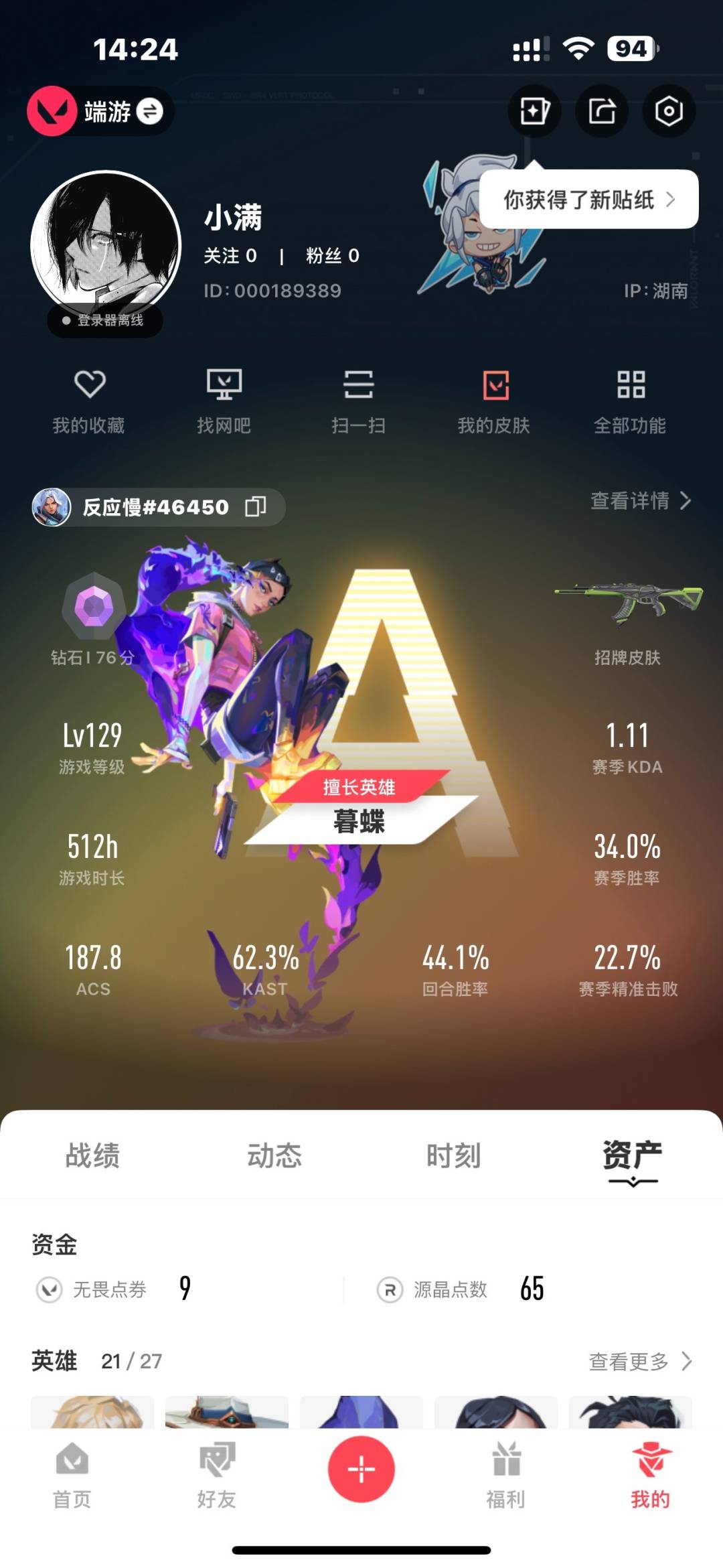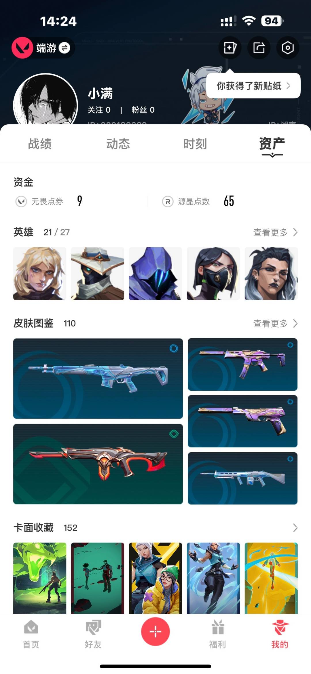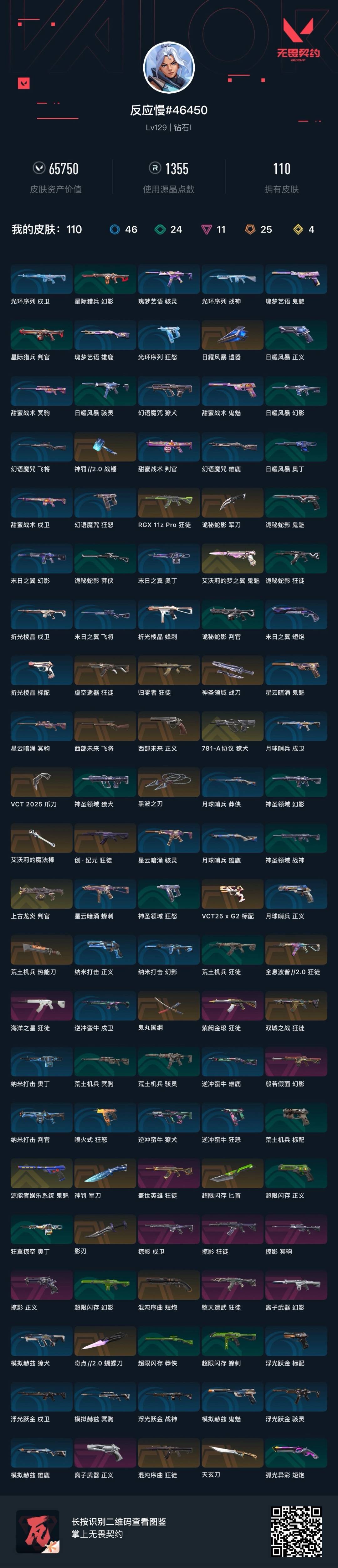 [12227448]25橙皮 4金皮 11紫皮 110皮肤 21英雄 152卡面 1355已用源晶 钻石 优质装备:掠影套装,狂徒-归零者,狂徒-混沌序曲,狂徒-掠影,狂徒-紫阙金琅,獠犬-781-A协议,幻影-般若假面,正义-离子武器,幻影-离子武器,狂徒-全息波普//2.0,正义-掠影,冥驹-掠影,鬼魅-源能者娱乐系统,戍卫-掠影,军刀-神罚,天玄刀,狂徒-盖世英雄,黑波之刃,鬼魅-艾沃莉的梦之翼,艾沃莉的魔法棒,匕首-超限闪存,蝴蝶刀-奇点//2.0,影刃,荒土机兵热能刀,鬼丸国纲,神圣领域 战刀,VCT 2025 爪刀,诡秘蛇影,神罚2.0 战锤 套装:VCT 2025赛季礼包,VCTCN2025套装 佩枪皮肤:标配-VCT25xG2,短炮-混沌序曲,正义-西部未来 霰弹枪皮肤:判官-上古龙炎 步枪皮肤:狂徒-创·纪元,狂徒-双城之战,狂徒-虚空遗器,RGX 11z pro 狂徒,狂徒-海洋之星,狂徒-堕天遗武 狙击枪皮肤:飞将-西部未来
