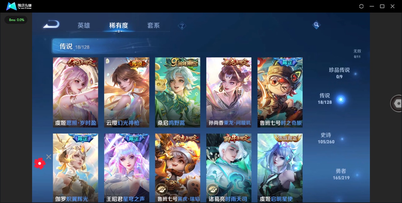 - [12115036]V8 2典藏 1珍品无双 26传说 125英雄 359皮肤 可修改实名 优质装备:馥梦繁花,鸣剑·曳影,弑枪猎影(韩信典藏),黄金狮子座,炽阳神光,一念神魔,无双飞将,山海·炽霜斩(李信年限),山海·琳琅生(小乔年限),山海·苍雷引(电光曜子),电玩·雷克斯,澜逐花归海,琥珀纪元马超 传说皮:乘龙·问璇玑(孙尚香年限),乘龙·铭钟鼎(赵云年限),乘龙·淬吴钩(孙策年限),貂蝉曦玄引,祥瑞亨通 珍宝阁皮:妄想食味,万物之道,玩趣恶龙 限定皮:愿照·九州拓(澜年限),愿照·岁时盈(虞姬年限),愿照·山河定(司空震年限),愿照·千秋盛(女娲年限),鸣野蒿,傲雪梅枪,绯月行,时之彼端,神威(电光马子),山海·碧波行(瑶年限),无限倾心-项羽,瑞麟志(木兰年限),至美·乘鲤谣,高山流水,五谷丰年,武圣,梁祝,天狼绘梦者,李小龙,如梦令-嫦娥,默契交锋-花木兰,孙行者,一生所爱,神奇女侠,匿光追影者,寅虎·心曲(虎婆),深海之息(深海大菠萝),枫霜尽,神器·万象笔,梦圆繁星,山海·玄木吟(马可年限) 史诗皮:鸭鸭历险记-刘禅,器灵·浮梦炉,化蝶舞,龙之律动,琥珀纪元伽罗,雪豹·霜爪,星界战将,石田雨龙,百相守梦-周瑜,茶境仙,乘龙·忆丹青(大乔年限),谪仙醉月,破空之剑,蒙犽顽岩魄,乘龙·聚宝船(安琪拉年限),怒海争锋,蔬乡物语(鲁班七号),超元猎域,百相守梦-百里守约,紫霞仙子,苍穹之光,黄金分割率,特工魅影,千年之狐,永昼,冰冠公主,真我赫兹(镜),鹤归松栖(赵怀真),江河有灵,百解令(蒙犽),高渐离燃音魔法,蒙恬荣光圣徽,电玩·爆裂旋风,无限星赏官,偶像歌手,百相守梦(关羽),龙骑士(小龙虾),末日机甲-吕布,猫狗日记-孙策,猫狗日记-大乔,时之恋人-孙尚香,乱世虎臣,节奏热浪,修罗,女仆咖啡,摇滚巨星,水果甜心,绅士熊喵,天才门将,星夜王子,心灵骇客,功夫厨神,德古拉伯爵,暗隐猎兽者,幽灵船长,鬼剑武藏,暗渊魔法,心灵战警,乐园奇幻夜,天秀·启明,舞动绿茵,地狱岩魂,诗语江南,纤云弄巧,拒霜思,缤纷独角兽,乘风破浪,逐浪之夏,水晶猎龙者,曙光守护者,箭羽风息,金属风暴,原初追逐者,圣诞狂欢,圣诞恋歌,鹰眼统帅,暗夜贵公子,魅力维加斯,黎明之约,赏金猎手,滕王阁序,无心,未来纪元-赵云,玫瑰异探