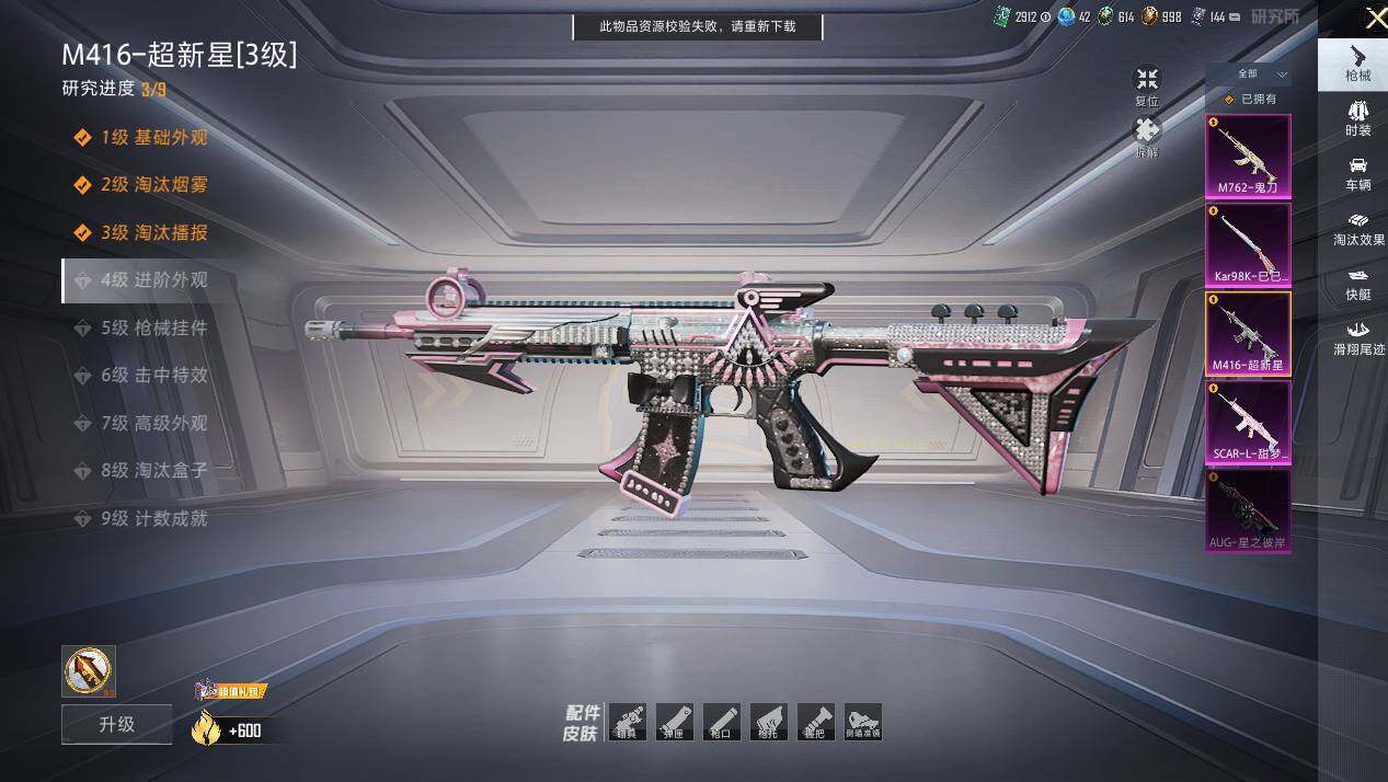 SCAR-L-甜梦小狐,M416-超新星,AUG-星之彼岸,M762-鬼刀,Kar98K-巳巳如意