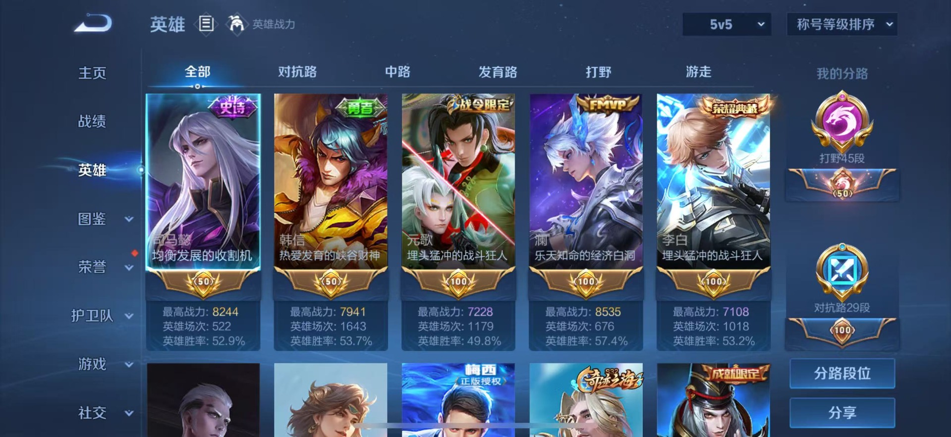 - [11601487]V6 8传说 124英雄 215皮肤 可修改实名 女号 优质装备:黄金射手座,久胜战神,炽阳神光,仲夏夜之梦(大飞蛾),无双飞将 珍宝阁皮:蔷薇恋人,玩趣恶龙 限定皮:鸣野蒿,遇见飞天,高山流水,齐天大圣,怒海麟威,五谷丰年,梁祝,李小龙,大圣娶亲 史诗皮:化蝶舞,龙之律动,藏狐·褐绒,怒海争锋,紫霞仙子,特工魅影,千年之狐,电玩·爆裂旋风,江河有灵,蒙恬荣光圣徽,无限星赏官,猫狗日记-孙策,水果甜心,天才门将,星夜王子,幽灵船长,鬼剑武藏,心灵战警,纤云弄巧,繁星吟游(呼啦呼啦),缤纷独角兽,乘风破浪,逐浪之夏,箭羽风息,圣诞恋歌,鹰眼统帅,魅力维加斯,黎明之约,无心