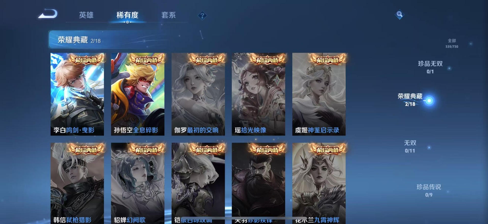 刘备时之恋人,赵云淬星耀世,李信一念神魔,达摩黄金狮子座,镜炽阳神光,西施游龙清影,曜云鹰飞将,曜李逍遥,马超无双飞将,澜逐花归海