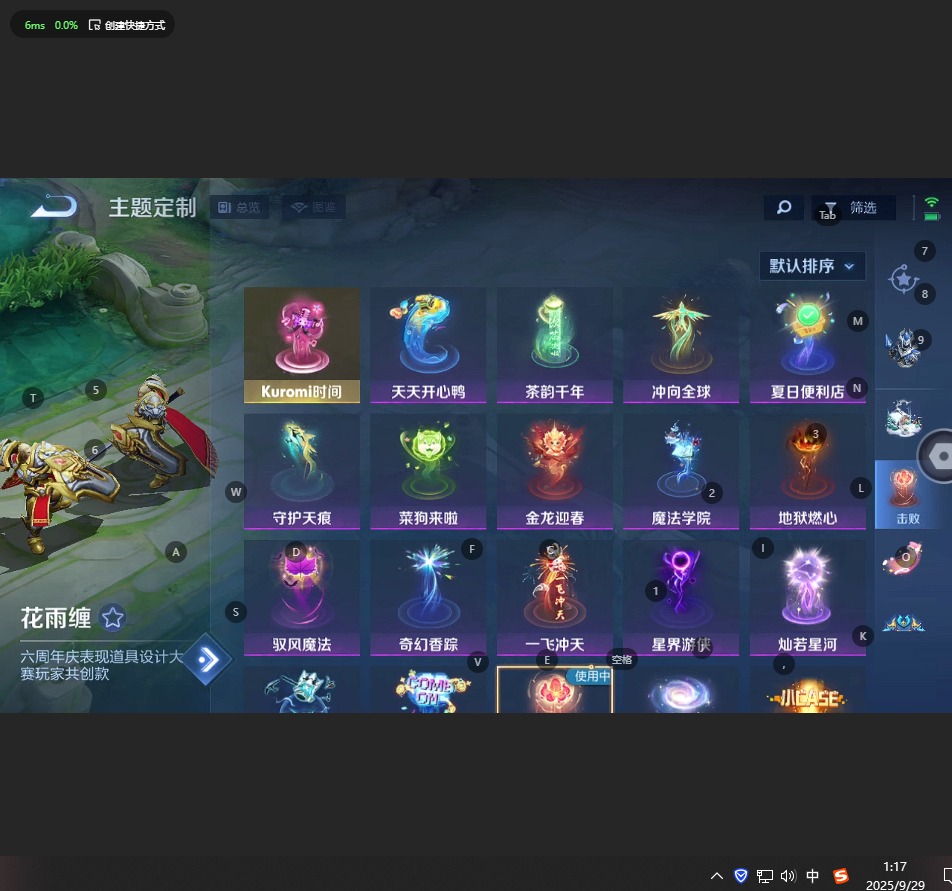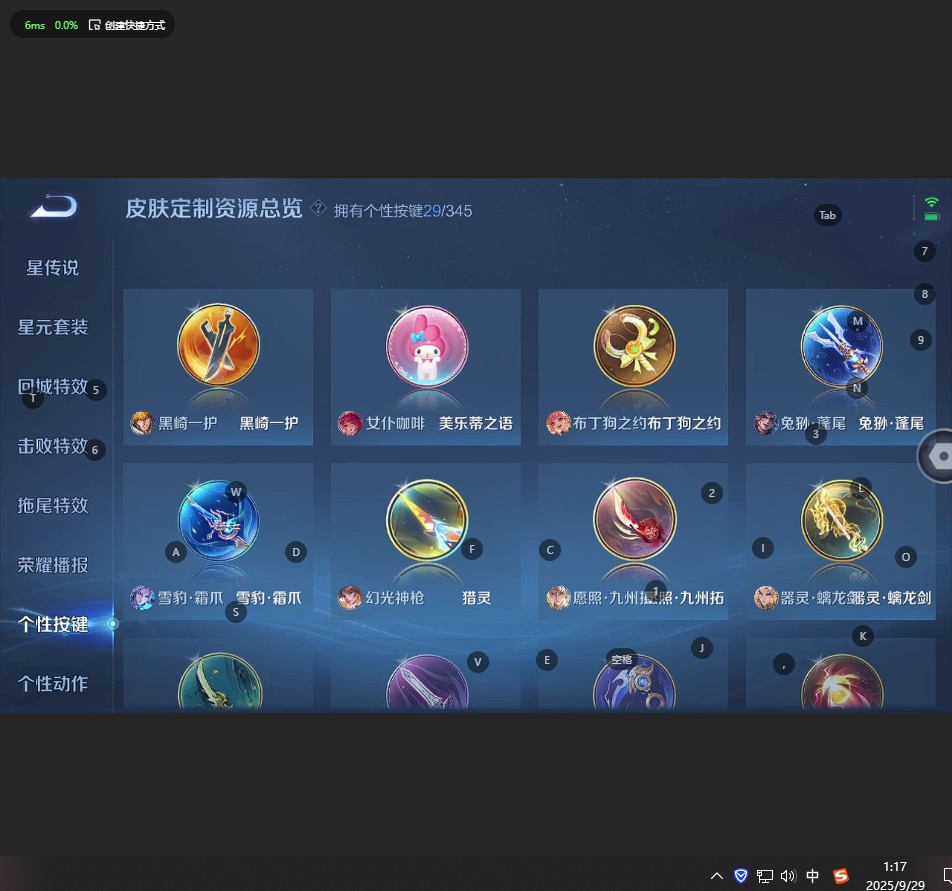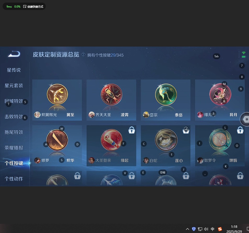 大乔白蛇,高渐离燃音魔法,夏侯惇乘风破浪,阿轲暗夜猫娘,阿轲节奏热浪,铠曙光守护者,刘备百相守梦,曹操幽灵船长,廉颇地狱岩魂,伽罗箭羽风息,小乔缤纷独角兽,小乔青蛇,孙尚香时之恋人,孙策猫狗日记,赵怀真鹤归松栖,赵怀真器灵·浮梦炉,鲁班七号电玩小子,项羽苍穹之光,吕布圣诞狂欢,吕布末日机甲,镜玫瑰异探,刘禅电玩·爆裂旋风,刘禅天才门将,宫本武藏鬼剑武藏,兰陵王暗隐猎兽者,花木兰水晶猎龙者,李白千年之狐,安琪拉心灵骇客,蒙犽百解令,杨戬天秀·启明,白起星夜王子,亚瑟心灵战警,程咬金功夫厨神,百里玄策原初追逐者,雅典娜冰冠公主,李元芳匿光侦查者,百里守约特工魅影,李元芳逐浪之夏,墨子龙骑士,墨子金属风暴,蔡文姬舞动绿茵,澜赏金猎手,娜可露露晚萤,王昭君偶像歌手,嫦娥拒霜思,橘右京修罗