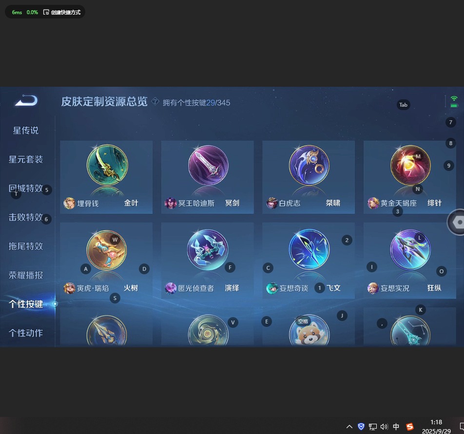 盾山梦圆繁星,曹操天狼征服者,典韦岱宗,不知火舞绯月行,鲁班七号寅虎·瑞焰,公孙离玉兔公主,司空震愿照·山河定,裴擒虎李小龙,花木兰默契交锋,桑启鸣野蒿,孙悟空孙行者,百里玄策白虎志,马超神威,赵云引擎之心,云中君时之祈愿,韩信飞衡,澜愿照·九州拓,虞姬愿照·岁时盈,关羽武圣