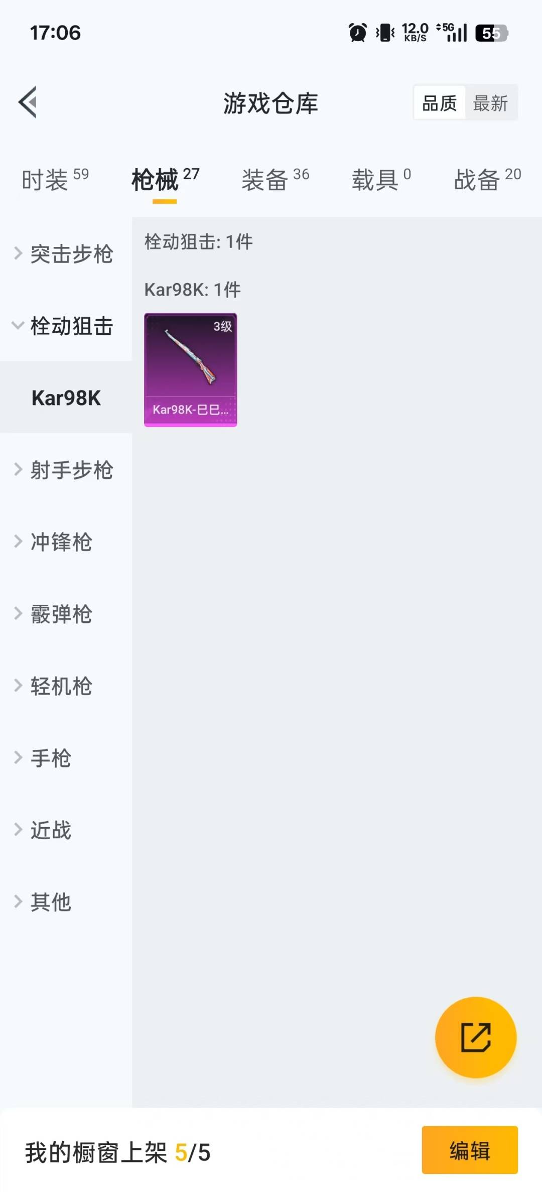 - [11519582]总资产:147 2传说枪械 可二次 高级安全箱(2×3)9.15号到期 可修改实名 烽火地带段位:青铜 全面战场段位:无段位 哈夫币:111 传说武器皮肤:复合弓-黑-天际线,725双管霰弹枪-送葬人-无题密令 史诗武器皮肤:PKM通用机枪-荒野求生,SV-98狙击步枪-林中猎手,PSG-1射手步枪-无垢,SV-98狙击步枪-囚徒