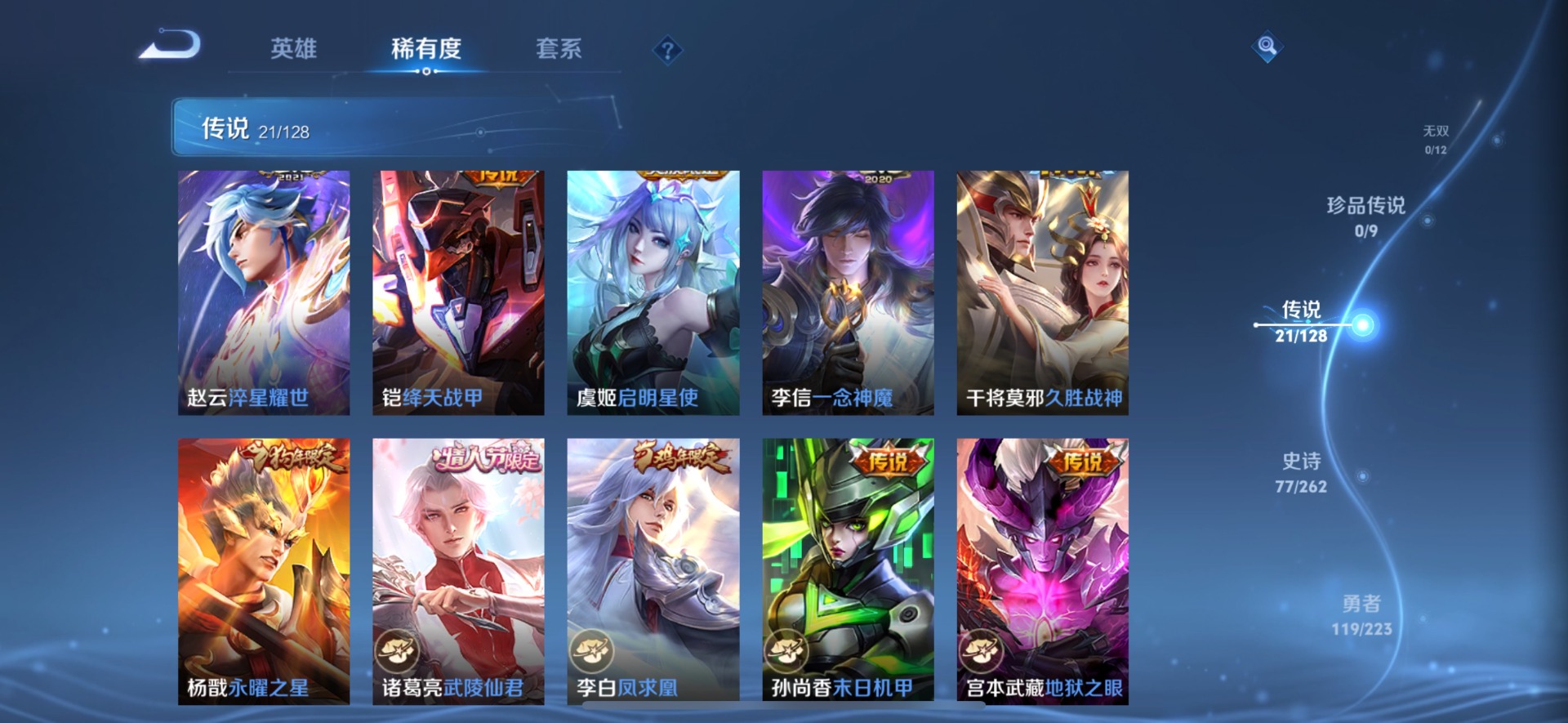 铠青龙志,赵云龙胆,裴擒虎李小龙,李白诗剑行,安琪拉魔法小厨娘,马可波罗山海·玄木吟,马可波罗深海之息,桑启鸣野蒿,猪八戒猪悟能,孙悟空孙行者,孙悟空大圣娶亲,孙悟空至尊宝,马超神威,韩信傲雪梅枪,韩信飞衡,关羽冰锋战神