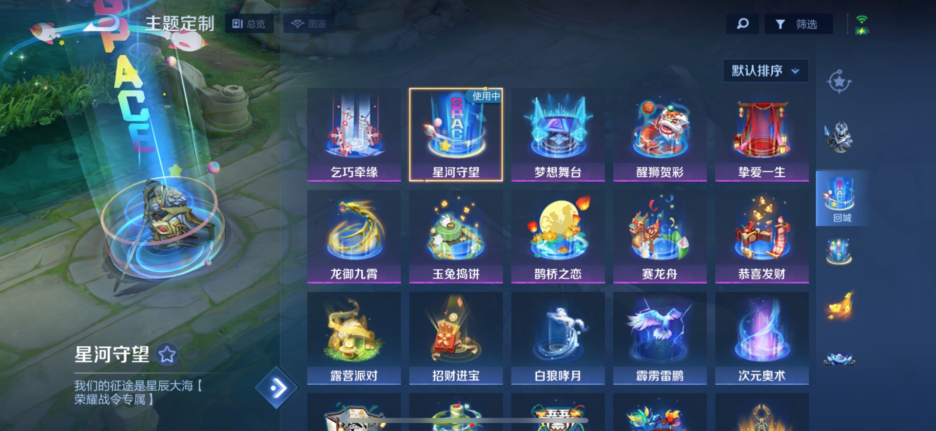 夏侯惇朔风刀,老夫子醍醐杖,沈梦溪星空之诺,沈梦溪大漠名商,盾山御銮,曹操烛龙,苏烈千军破阵,典韦穷奇,达摩沙漠行僧,牛魔御旌,鲁班七号狮舞东方,吕布猎兽之王,兰陵王金庭之子,裴擒虎擒涛扼浪,鲁班大师探海日志,明世隐疑决卦,白起狰,鬼谷子原初探秘者,张良古海寻踪,桑启海盐诗旅,嬴政白昼王子,狄仁杰万华元夜,芈月重明,程咬金演武夺筹,李元芳银河之约,李元芳云中旅人,弈星混沌棋,米莱狄御霄,钟馗神迹守卫,钟馗驱傩正仪,狂铁御狮,太乙真人饕餮