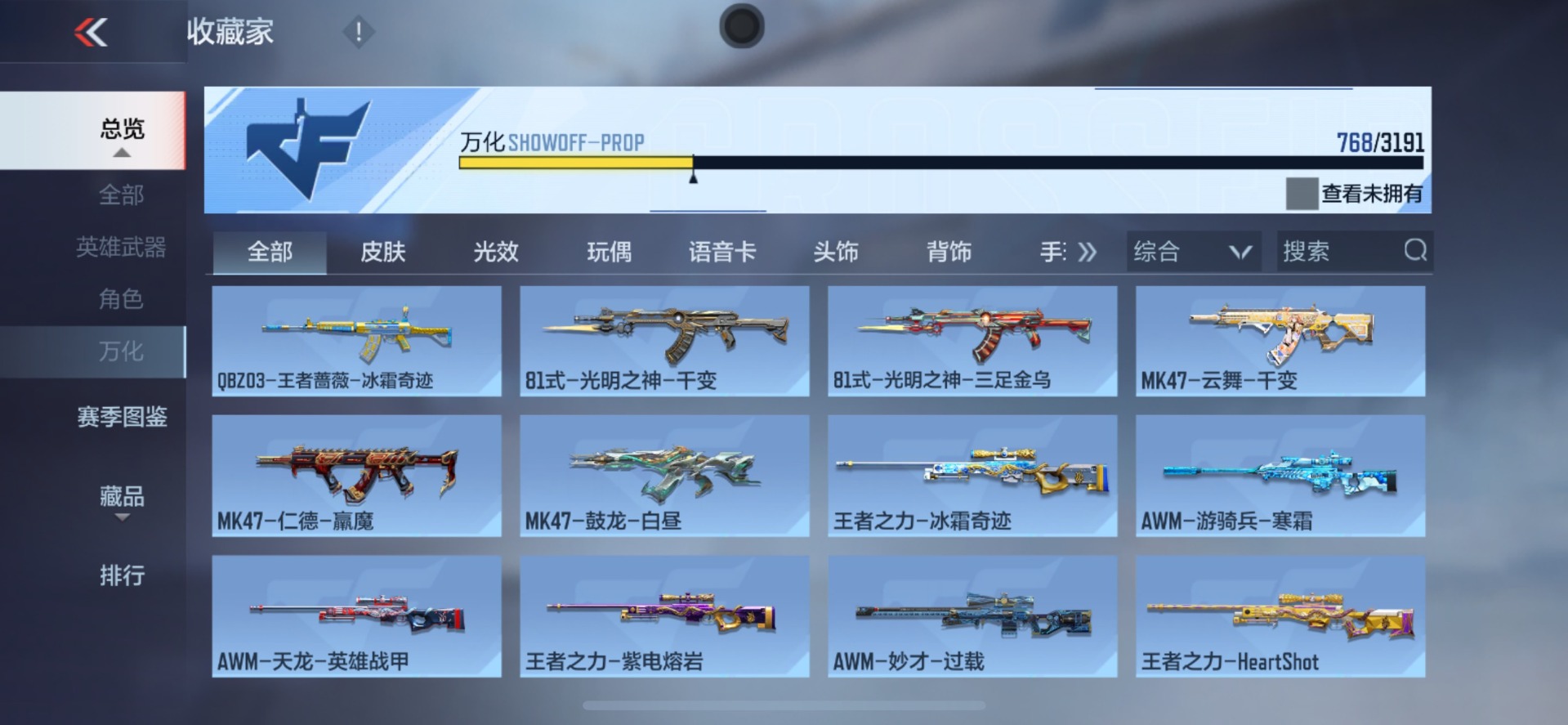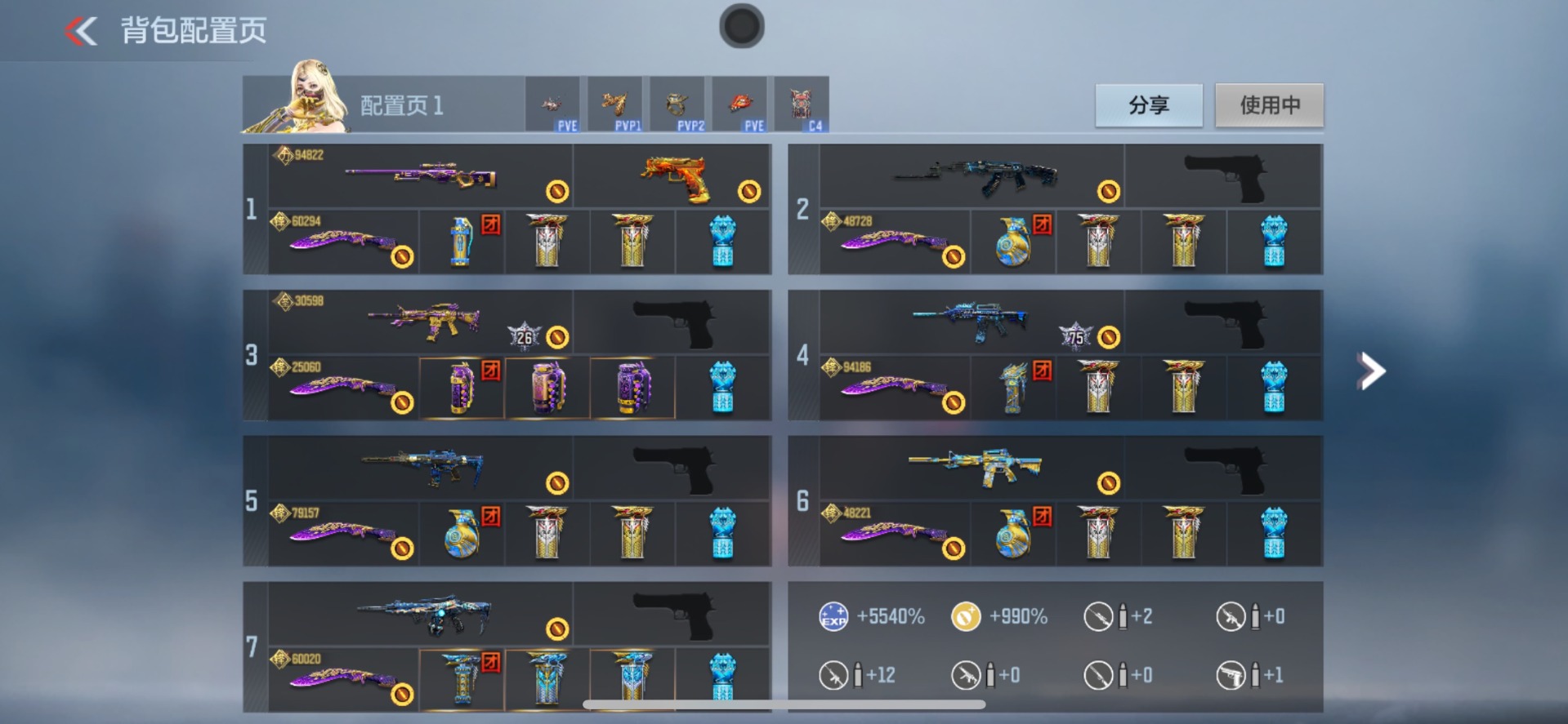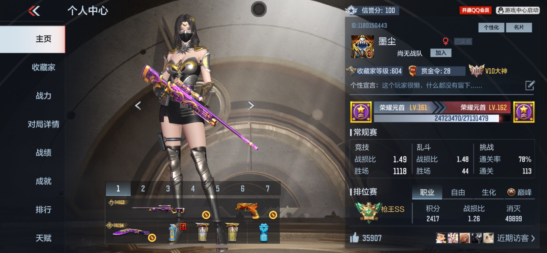- PX_2100887-??/枪械12/装备176/载具2/战备102/王牌印记8/热力值57433/五级SCAR-L-梦幻火箭/五级SCAR-L-童趣迷兔/六级M416-心之恋语/四级AUG-圣斗士星矢/五级M762-甜蜜誓约/三级Vector-最终圣卫者/四级汤姆逊-热量炸弹/五级AKS-74U-星穹咏叹调/四级P90-冷漠罗丽/四级Kar98K-巳巳如意/四级SLR-暗夜玫瑰/五级Mk14-甜
