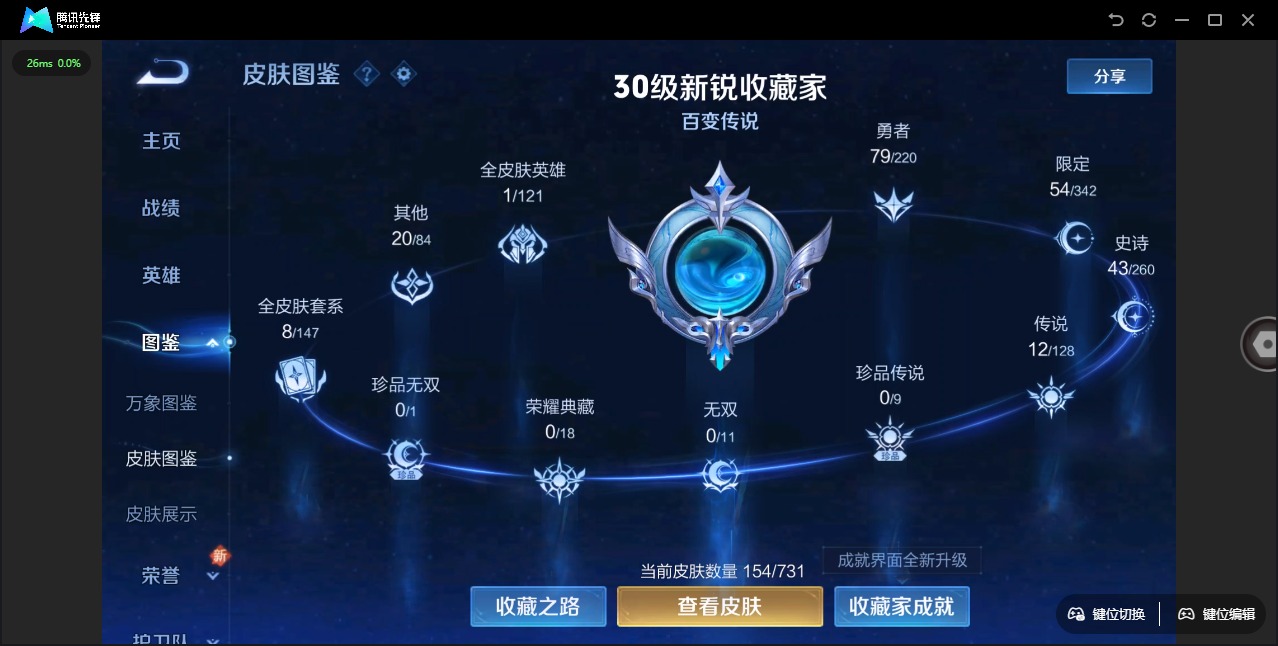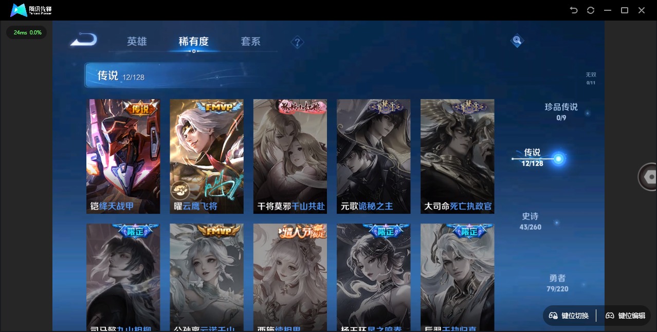 - PX_2074560-安卓Q 【包人脸】 英雄数量:123 皮肤数量:248 贵族等级:贵族V8 【信用分79,游戏无限制】【星传说 星际治安官 未来机甲】无双限定1 传说品质19 史诗品质59甄姬雪境奇遇 祈雪灵祝 愿照·千秋盛 愿照·岁时盈 诗剑行 猫影幻舞 云霓雀翎 一念神魔 幻光神枪 绯月行 末日机甲女 浮生妄 无限倾心女 启明星使 黄金射手座 胖达荣荣 超时空战士男 鸣野蒿 逐花归海 乘