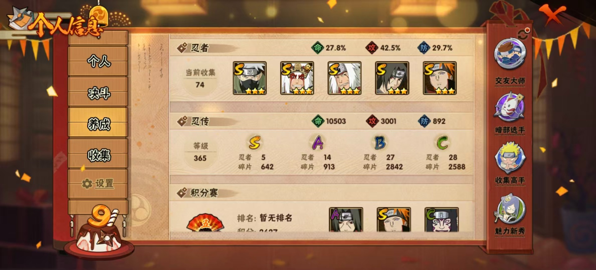 [12232572]V4 5S忍 14A忍 11通灵 280.5W战力 可二次 可修改实名 优质装备:旗木卡卡西「须佐能乎」,自来也 「传说中的三忍」 S级忍者:自来也 「舞之豪杰」,宇智波鼬 「须佐能乎」,佩恩「天道」