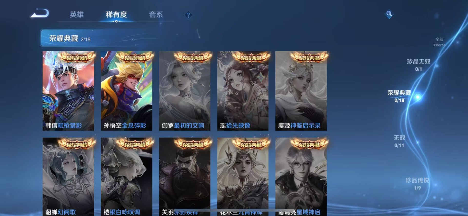 - PX_2110233-?万象图鉴·九霄神辉·瑶典藏拾光映像】【时雨天司·祈雪灵祝·李逍遥】【无二次-2025.8.21出二次】ASYw13004-安卓Q-125英雄-408皮肤-300铭文-贵族积分11w【贵族9】【3典藏·3星传说·39传说·1天幕·11按键】【因赛季更新游戏段付以上号为准!】 【荣耀典藏】:李白鸣剑曳影,花木兰九霄神辉,瑶拾光映像 【星元皮肤】:狄仁杰星际治安官,宫本武藏幽冥之
