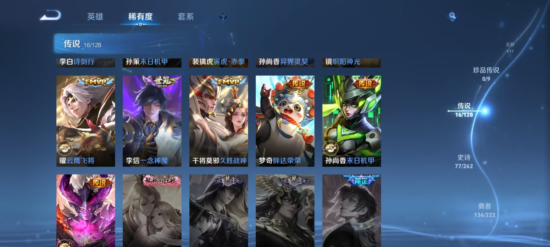 夏侯惇朔风刀,老夫子醍醐杖,沈梦溪大漠名商,盾山御銮,苏烈千军破阵,达摩沙漠行僧,兰陵王金庭之子,裴擒虎擒涛扼浪,鲁班大师探海日志,明世隐疑决卦,鬼谷子原初探秘者,张良古海寻踪,桑启海盐诗旅,狄仁杰万华元夜,程咬金演武夺筹,李元芳云中旅人,弈星混沌棋,钟馗驱傩正仪