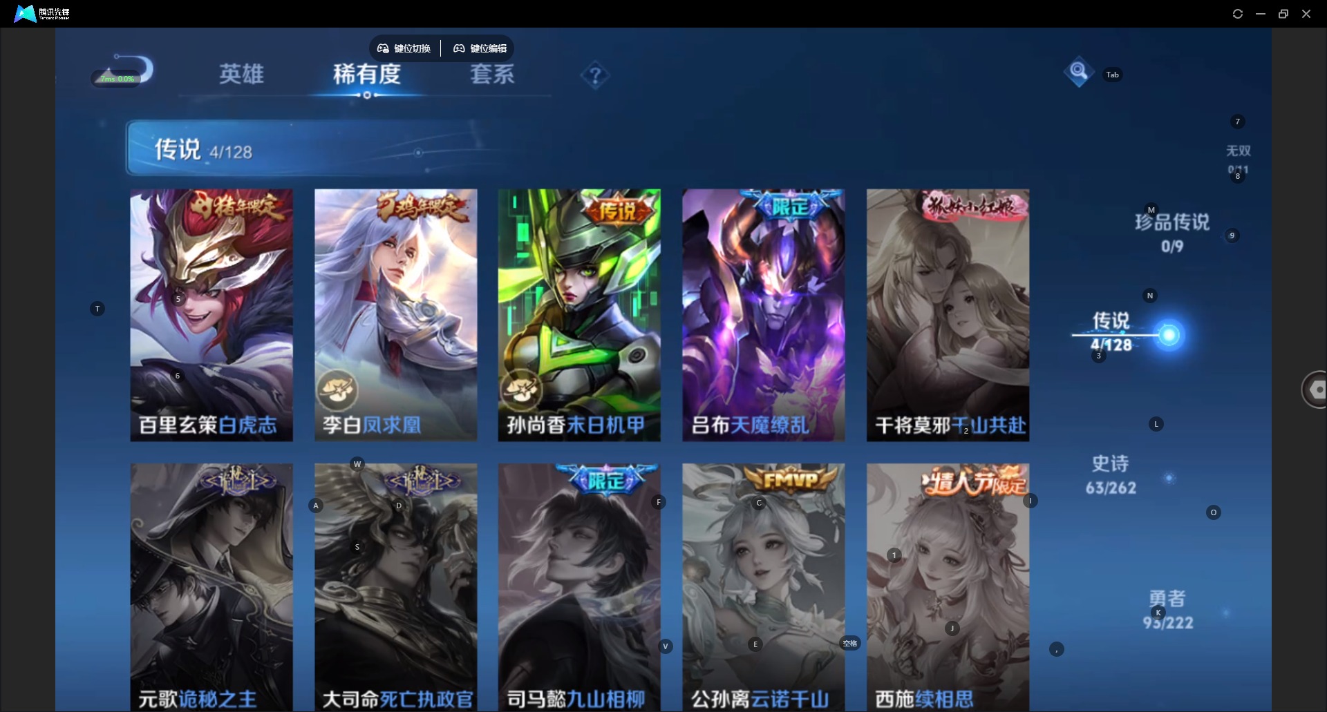 - PX_2086492-33 安卓QQ/至尊星耀/120皮肤/97英雄/0典藏/0珍品无双/1无双/1珍品传说/10传说/36史诗/3稀有英雄 【1 珍品传说】时之奇旅 孙策, 【1 无双皮肤】真我赫兹 瑶, 【10 传说皮肤】逐花归海 澜,无双飞将 马超,黄金射手座 后羿,战鼓燎原 典韦,妄想实况 马可波罗,黄金白羊座 张良,愿照·九州拓 澜,愿照·山河定 司空震,祥瑞亨通 裴擒虎,鸣野蒿 桑启,