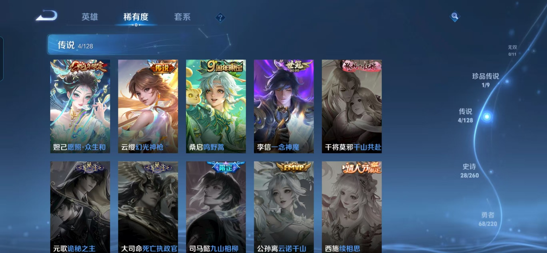 - [11529243]V8 2典藏 18传说 125英雄 230皮肤 典藏英雄武则天 可修改实名 优质装备:无限飓风号(高达),银白咏叹调(倪克斯侍卫),黄金狮子座,冠军飞将,末日机甲-孙尚香(绿蚂蚱),地狱火,仲夏夜之梦(大飞蛾),零号·赤焰,海洋之心,地狱之眼,淬星耀世,碎云,燃星之曲,电玩·雷克斯,鹤羽星尊 珍宝阁皮:优雅恋人 限定皮:至尊宝,白虎志(电光耗子),凤求凰(白切鸡),武陵仙君(小桃花),傲雪梅枪,时雨天司(水龙头),瑞麟志(木兰年限),遇见飞天,五谷丰年,青龙志(铠年限),冰锋战神,梁祝,龙胆,天狼溯光者,李小龙,朱雀志(守约年限),孙行者,猪悟能,一生所爱,大圣娶亲,引擎之心,冰霜恋舞曲,美猴王 史诗皮:百相守梦-黄忠,紫霞仙子,电玩小子(小书包),白龙吟,黄金分割率,特工魅影,千年之狐,电玩·兔顽号,百解令(蒙犽),偶像歌手,龙骑士(小龙虾),暗夜猫娘,冰冠公主,末日机甲-吕布,乱世虎臣,节奏热浪,女仆咖啡,摇滚巨星,水果甜心,绅士熊喵,天才门将,星夜王子,心灵骇客,暗隐猎兽者,幽灵船长,心灵战警,纤云弄巧,繁星吟游(呼啦呼啦),拒霜思,缤纷独角兽,乘风破浪,水晶猎龙者,曙光守护者,唤灵魅影,金属风暴,原初追逐者,圣诞狂欢,鹰眼统帅,暗夜贵公子,魅力维加斯,未来纪元-赵云