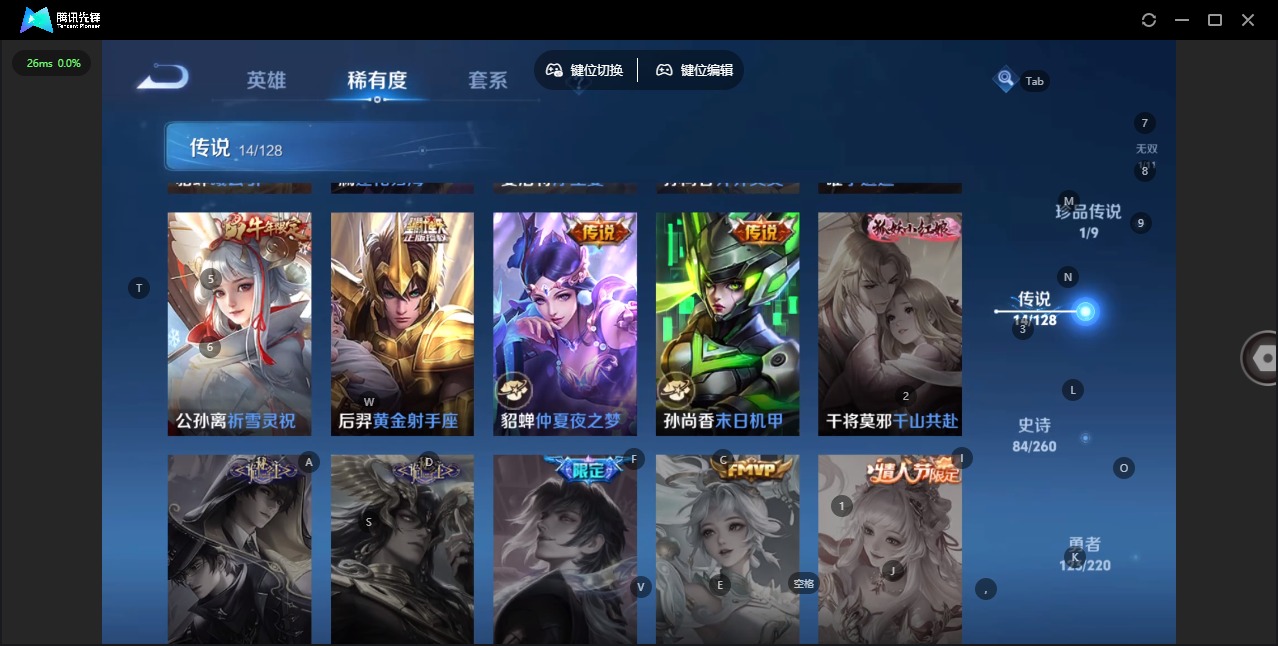 - [11864143]V5 4传说 118英雄 121皮肤 可修改实名 女号 优质装备:猫影幻舞,朵莉亚心动手记 珍宝阁皮:蔷薇恋人 限定皮:愿照·福禄聚(蔡文姬年限),鸣野蒿,时之彼端,游园惊梦,李小龙 史诗皮:破空之剑,涂山红红,芈月浮光幕影,乘龙·聚宝船(安琪拉年限),黄金分割率,冰冠公主,偶像歌手,白蛇,水果甜心,天才门将,暗隐猎兽者,幽灵船长,鬼剑武藏,纤云弄巧,拒霜思,缤纷独角兽,金属风暴,鹰眼统帅,魅力维加斯