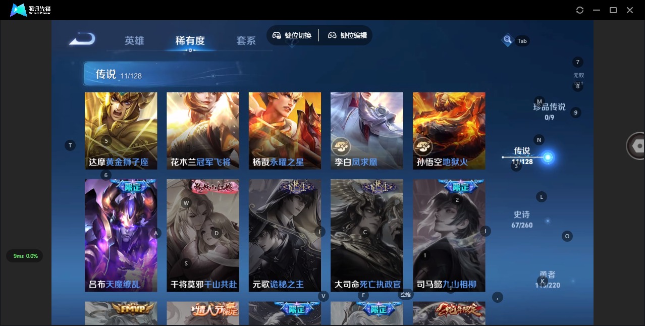 - [11846836]V7 1典藏 11传说 123英雄 188皮肤 可修改实名 优质装备:鸣剑·曳影,云鹰飞将(小将军),炽阳神光,一念神魔,无双飞将,碎云,山海·炽霜斩(李信年限),记忆之芯(机甲兔),澜逐花归海,涂山容容 传说皮:幻光神枪 珍宝阁皮:胡桃夹子,玩趣恶龙 限定皮:愿照·山河定(司空震年限),逐霄战戟,鸣野蒿,五谷丰年,李小龙,朱雀志(守约年限),时之祈愿-云中君,山海·玄木吟(马可年限) 史诗皮:星界战将,龙之律动,茶境仙,百相守梦-黄忠,黄金分割率,特工魅影,江河有灵,鹤归松栖(赵怀真),魅语,蒙恬荣光圣徽,电玩·爆裂旋风,暗夜猫娘,龙骑士(小龙虾),末日机甲-吕布,乱世虎臣,修罗,摇滚巨星,水果甜心,绅士熊喵,天才门将,星夜王子,德古拉伯爵,暗隐猎兽者,幽灵船长,鬼剑武藏,舞动绿茵,地狱岩魂,缤纷独角兽,乘风破浪,逐浪之夏,水晶猎龙者,曙光守护者,金属风暴,原初追逐者,圣诞狂欢,圣诞恋歌,鹰眼统帅,魅力维加斯,无心,未来纪元-赵云