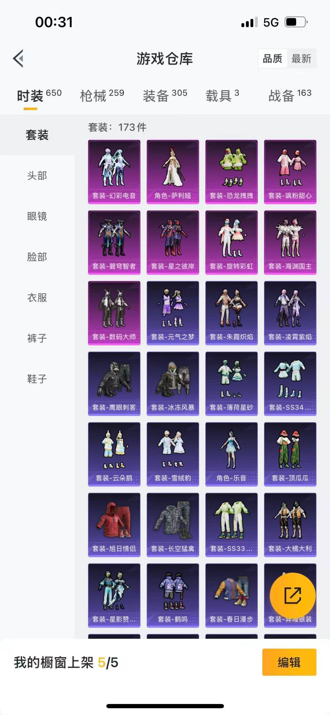套装-鹰眼刺客,套装-奇异狩猎者,套装-呆萌铁蟹,套装-数码大师,套装-仓鼠灰灰,套装-软萌银虎,套装-星之彼岸,套装-海渊国主,恐龙拽拽套装,套装-旋转彩虹,套装-飒粉甜心,角色-萨利娅,套装-碧穹智者