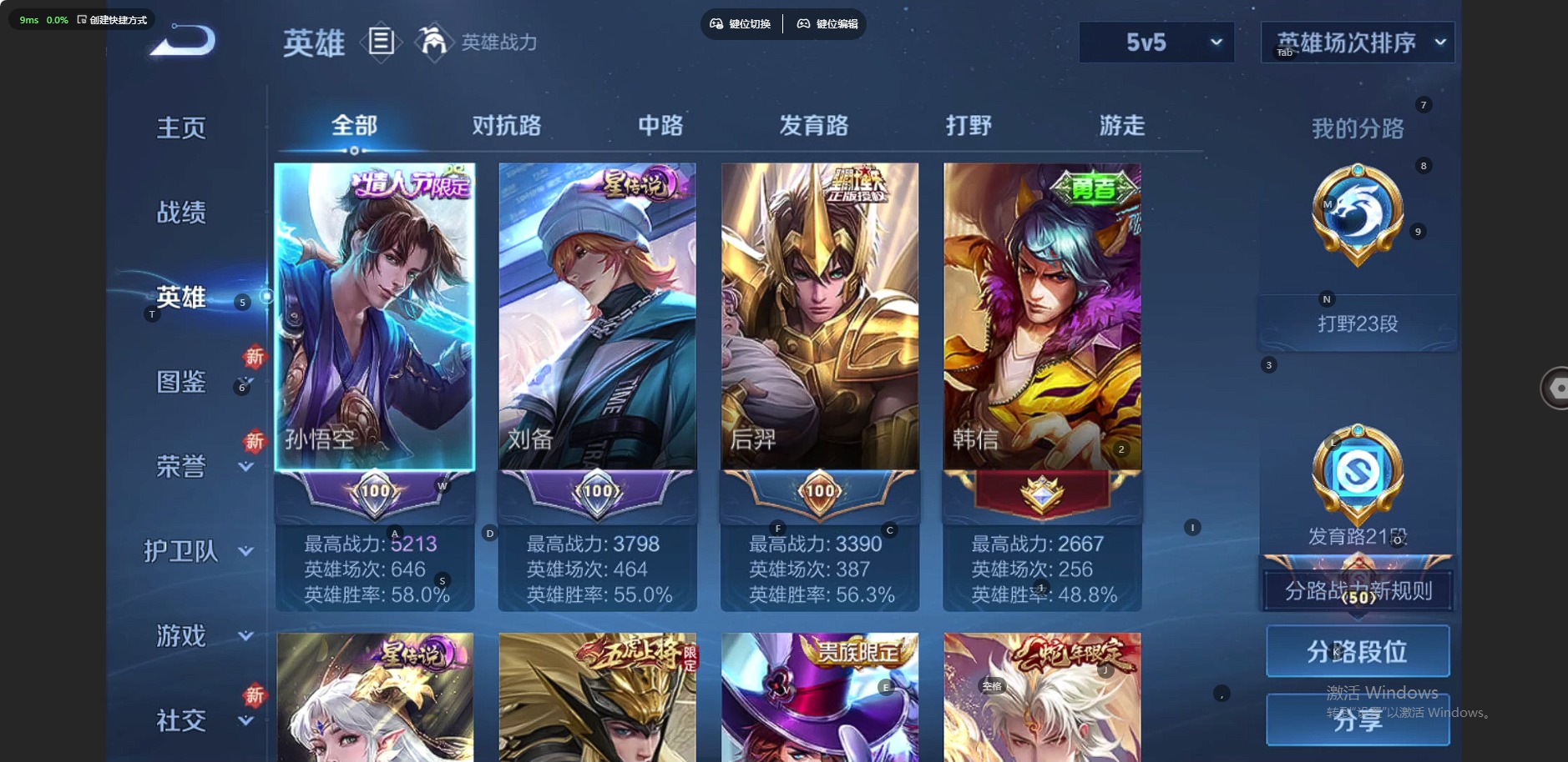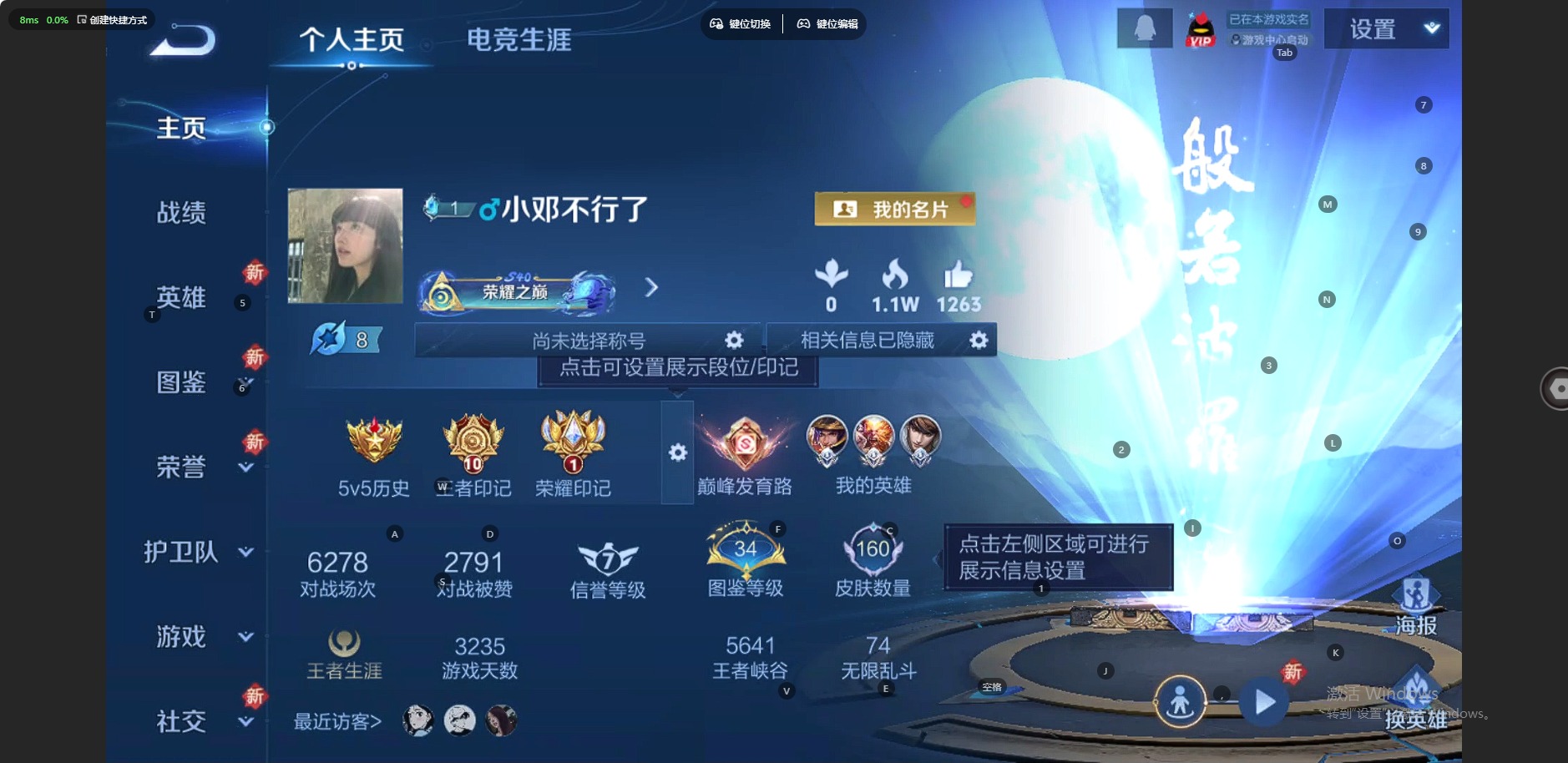 - PX_2108066-实名: 可修改 贵族等级: V7 英雄数: 120 皮肤数: 143 传说皮: 音你心动-小乔 限定皮: 乒乒小将