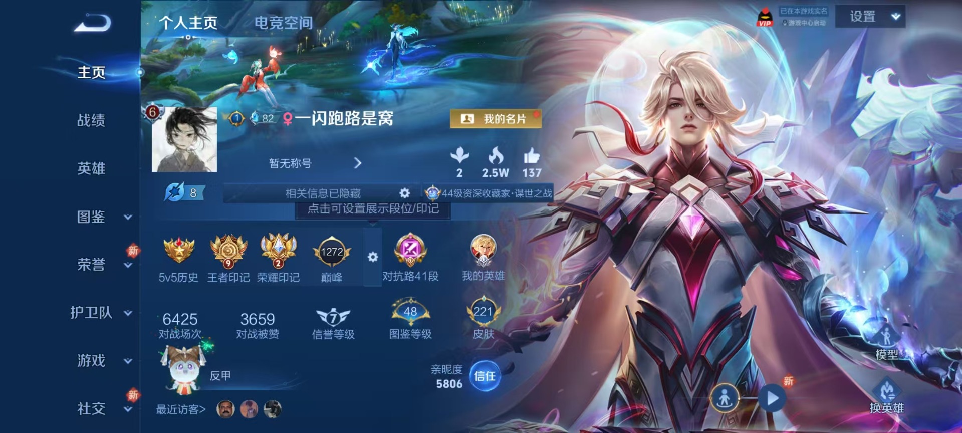 - [12296510]V9 1典藏 42传说 125英雄 325皮肤 可修改实名 优质装备:银白咏叹调(倪克斯侍卫),云鹰飞将(小将军),绛天战甲(鸡嘴战神),炽阳神光,一念神魔,云霓雀翎,地狱火,零号·赤焰,地狱之眼,飞鸢探春,李逍遥,时之恋人-刘备(电焊工),淬星耀世,末日机甲-孙策,挚爱之约,无双飞将,碎云,山海·炽霜斩(李信年限),山海·苍雷引(电光曜子),炽翼辉光(娃娃菜牛角包),燃星之曲,画中仙,浮生妄,记忆之芯(机甲兔),百相守梦(张飞),电玩·雷克斯,澜逐花归海 珍宝阁皮:优雅恋人,玩趣恶龙 限定皮:至尊宝,凤凰于飞,武陵仙君(小桃花),异界灵契(白毛香),傲雪梅枪,寅虎·展翼(孙膑年限),前尘镜,无限倾心-项羽,瑞麟志(木兰年限),诗剑行,无限倾心-虞姬,齐天大圣,匿光决锋者,怒海麟威,五谷丰年,青龙志(铠年限),梁祝,龙胆,天狼绘梦者,李小龙,玄武志(苏烈年限),朱雀志(守约年限),默契交锋-兰陵王,孙行者,猪悟能,匿光追影者,寅虎·御盾(廉颇年限),寅虎·瑞焰(虎皮蛋子),寅虎·心曲(虎婆),寅虎·赤拳(老虎年限),时之祈愿-云中君,百木心枪,启示之音,无尽星芒,深海之息(深海大菠萝),枫霜尽,山海·玄木吟(马可年限) 史诗皮:龙之律动,石田雨龙,怒海争锋,蔬乡物语(鲁班七号),百相守梦-黄忠,遇见神鹿,紫霞仙子,白龙吟,黄金分割率,千年之狐,永昼,江河有灵,匿光侦查者,真我赫兹(百里守约),魅语,百解令(蒙犽),高渐离燃音魔法,蒙恬荣光圣徽,无限星赏官,匿光破解者,偶像歌手,电玩·爆裂旋风,百相守梦(刘备),暗夜猫娘,百相守梦(关羽),末日机甲-吕布,猫狗日记-孙策,时之恋人-孙尚香,女仆咖啡,水果甜心,天才门将,星夜王子,心灵骇客,功夫厨神,德古拉伯爵,暗隐猎兽者,幽灵船长,鬼剑武藏,心灵战警,乐园奇幻夜,舞动绿茵,纤云弄巧,繁星吟游(呼啦呼啦),拒霜思,缤纷独角兽,乘风破浪,逐浪之夏,龙鼓争鸣,月团寄思,水晶猎龙者,热力回旋,箭羽风息,唤灵魅影,金属风暴,圣诞恋歌,鹰眼统帅,魅力维加斯,赏金猎手,奇遇舞章,天秀·音浪,寅虎·御盾,无心,未来纪元-赵云