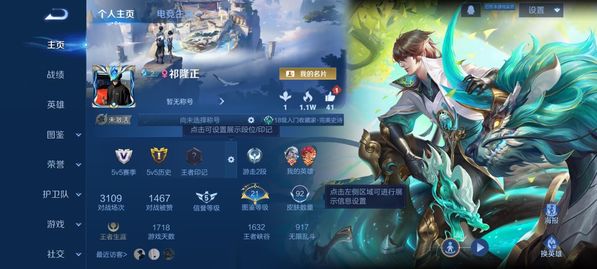 [12234591]V7 3传说 109英雄 92皮肤 可修改实名 优质装备:绛天战甲(鸡嘴战神),地狱火,超时空战士-狄仁杰 珍宝阁皮:玩趣恶龙 限定皮:五谷丰年,李小龙,默契交锋-花木兰,山海·玄木吟(马可年限) 史诗皮:白龙吟,黄金分割率,江河有灵,偶像歌手,乱世虎臣,节奏热浪,修罗,水果甜心,星夜王子,心灵骇客,暗隐猎兽者,幽灵船长,鬼剑武藏,心灵战警,水晶猎龙者,金属风暴,圣诞狂欢,圣诞恋歌,鹰眼统帅,魅力维加斯,无心,未来纪元-赵云