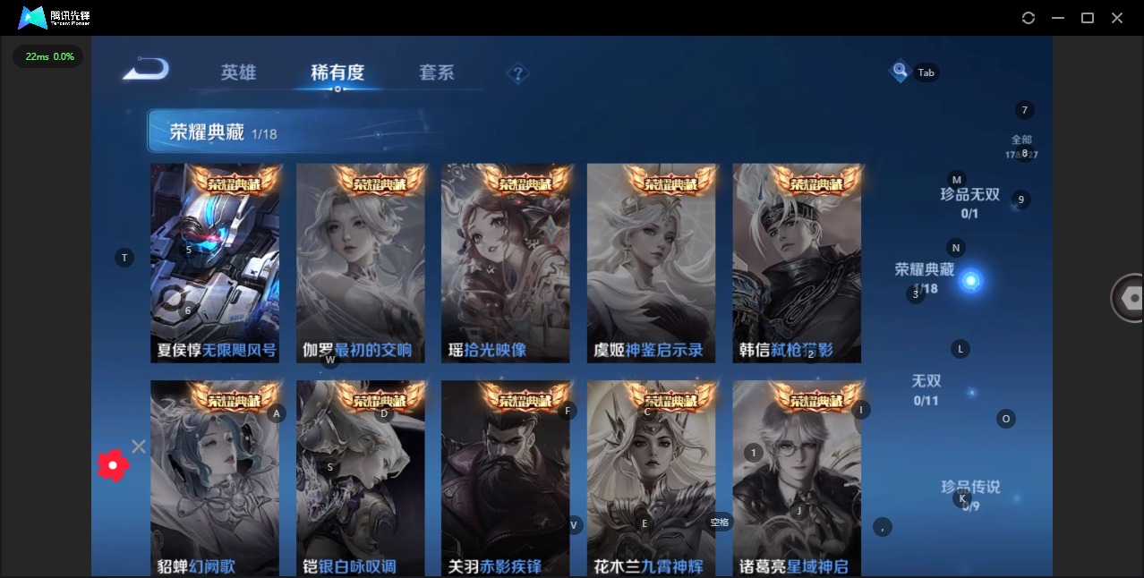- [11905218]V8 1典藏 4珍品传说 27传说 125英雄 314皮肤 可修改实名 优质装备:九霄神辉(木兰典藏),怪盗基德,朽木白哉,黑崎一护,黄金狮子座,黄金射手座,冠军飞将,云鹰飞将(小将军),猫影幻舞,久胜战神,一念神魔,云霓雀翎,地狱火,零号·赤焰,地狱之眼,无双飞将,燃星之曲,画中仙,鹤羽星尊,澜逐花归海,诡秘之主,涂山容容 珍品传说:兔狲·蓬尾 传说皮:祥瑞亨通,幻光神枪 珍宝阁皮:万物之道,优雅恋人 限定皮:愿照·千秋盛(女娲年限),逐霄战戟,映山客,陌上桑,鸣野蒿,至尊宝,白虎志(电光耗子),魔法小厨娘,时雨天司(水龙头),神威(电光马子),飞衡(韩信年限),遇见飞天,诗剑行,五谷丰年,武圣,御风骁将(吕布年限),逐梦之星,李小龙,逐梦之影,朱雀志(守约年限),孙行者,大圣娶亲,青春决赛季,乒乒小将 史诗皮:鸭鸭历险记-刘禅,化蝶舞,星界战将,谪仙醉月,龙之律动,石田雨龙,怒海争锋,炽弈燎原,破空之剑,东方月初,埋骨钱,海诺心动手记,决胜骁骑,上官婉儿群星魔术团,蔬乡物语(鲁班七号),百相守梦-百里守约,星界特工,百相守梦-黄忠,织梦人,紫霞仙子,苍穹之光,白龙吟,特工魅影,千年之狐,永昼,江河有灵,鹤归松栖(赵怀真),真我赫兹(镜),真我赫兹(百里守约),魅语,高渐离燃音魔法,蒙恬荣光圣徽,无限星赏官,冰冠公主,白蛇,电玩·爆裂旋风,百相守梦(关羽),龙骑士(小龙虾),末日机甲-吕布,猫狗日记-孙策,时之恋人-孙尚香,乱世虎臣,节奏热浪,修罗,女仆咖啡,水果甜心,天才门将,星夜王子,功夫厨神,德古拉伯爵,暗隐猎兽者,幽灵船长,鬼剑武藏,心灵战警,乐园奇幻夜,天秀·启明,舞动绿茵,地狱岩魂,诗语江南,纤云弄巧,缤纷独角兽,乘风破浪,逐浪之夏,月团寄思,水晶猎龙者,曙光守护者,箭羽风息,金属风暴,圣诞狂欢,圣诞恋歌,鹰眼统帅,魅力维加斯,黎明之约,无心,未来纪元-赵云