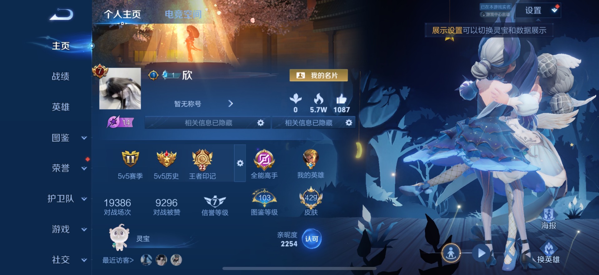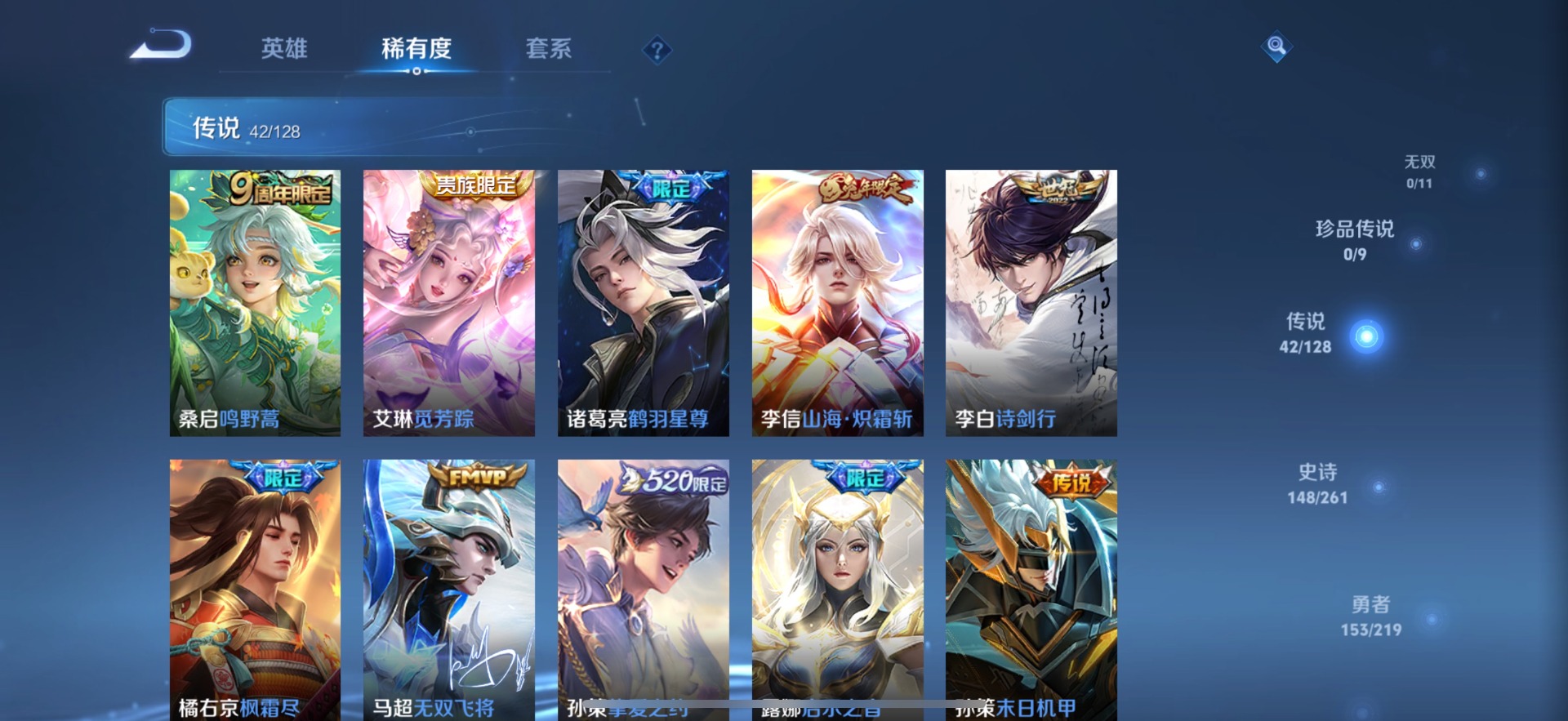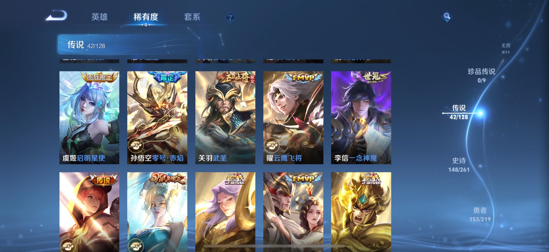 - [10353782]实名: 不可修改 性别: 男号 贵族等级: V6 英雄数: 124 皮肤数: 163 荣耀水晶: 鸣剑·曳影 传说皮: 无双飞将,幻光神枪 限定皮: 匿光启智者,五谷丰年,鸣野蒿
