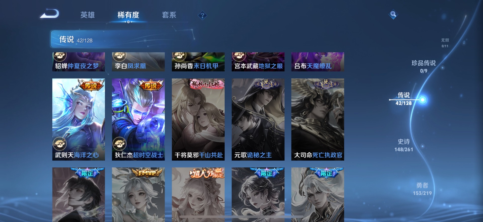 铠绛天战甲,刘备时之恋人,赵云淬星耀世,干将莫邪久胜战神,李信一念神魔,孙策末日机甲,孙策挚爱之约,达摩黄金狮子座,镜炽阳神光,周瑜音你心动,貂蝉遇见胡旋,艾琳觅芳踪,西施游龙清影,张良黄金白羊座,孙悟空零号·赤焰,曜云鹰飞将,曜李逍遥,马超无双飞将